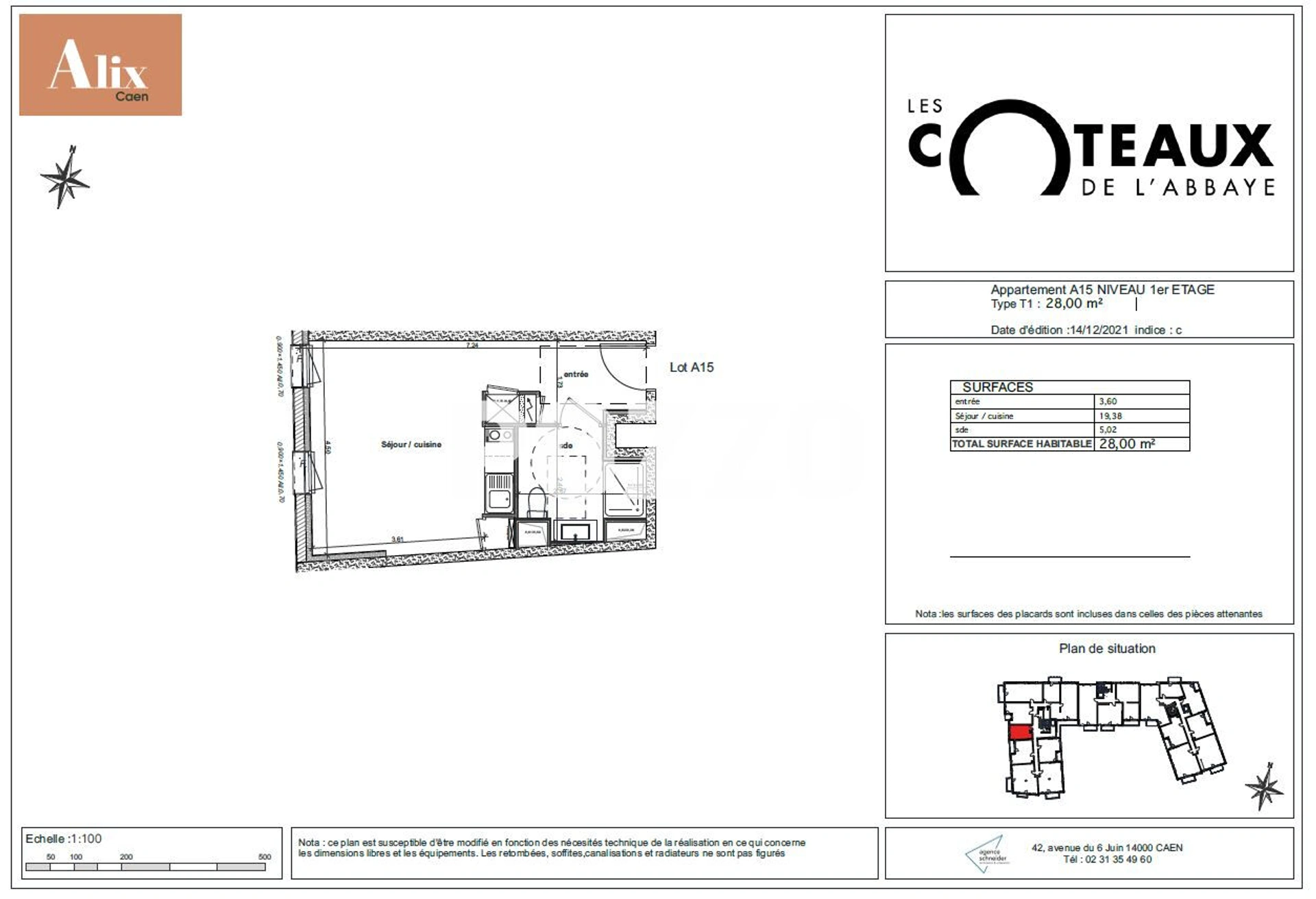 Votre agence POZZO Caen Location est heureuse de vous proposer cet appartement au premier étage avec ascenseur de 1 pièce de 28 m² à CAEN (14000). Son intérieur compte une entrée, une cuisine aménagée équipée (plaque de cuisson et hotte), une salle d'eau et des WC.