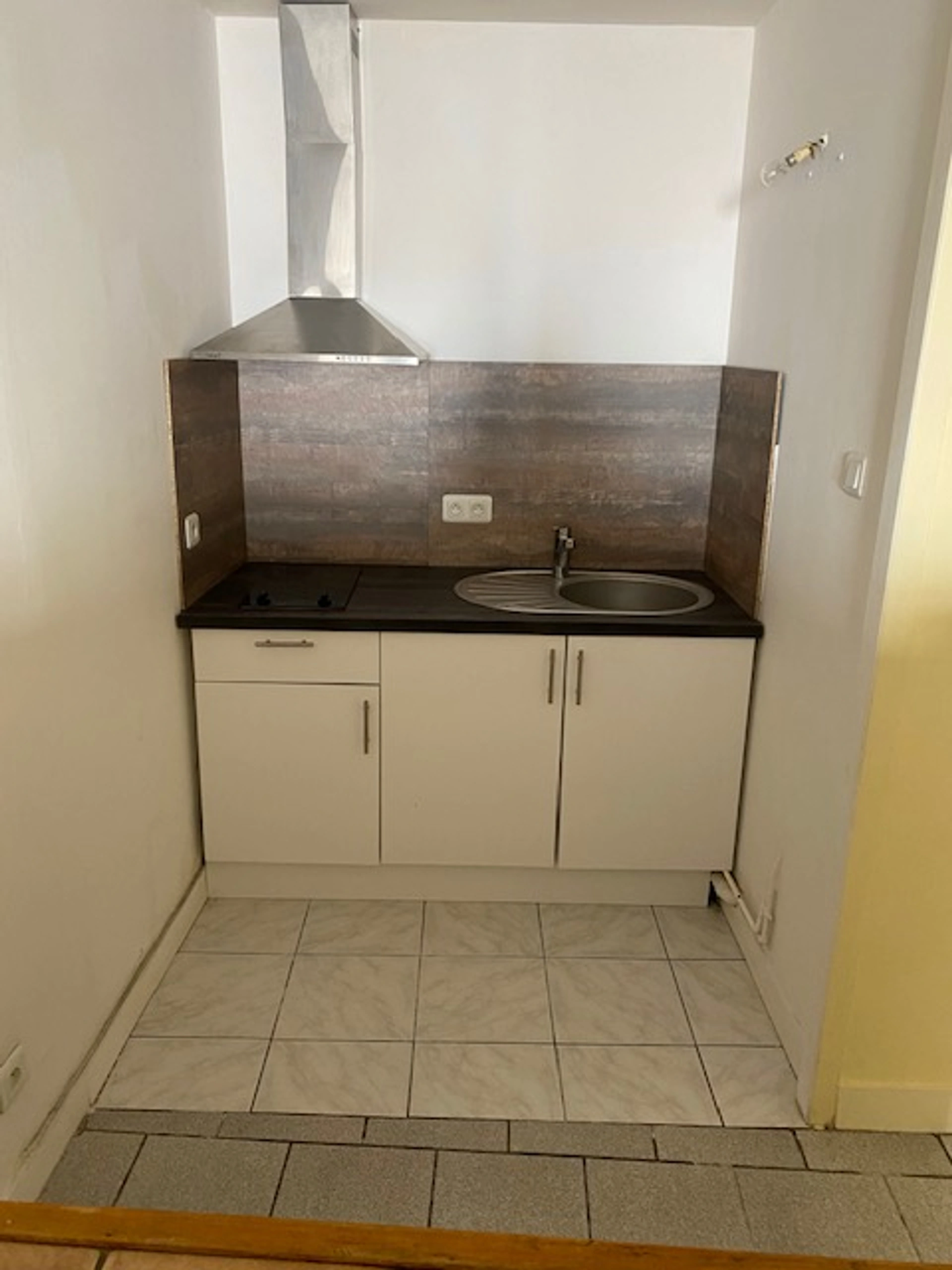 Charmant Studio à louer à Cherbourg, quartier Pasteur, en rdc comprenant: une entrée, une pièce principale de 26 m² avec espace cuisine aménagée et équipée (plaques, hotte), salle d'eau, wc séparé.