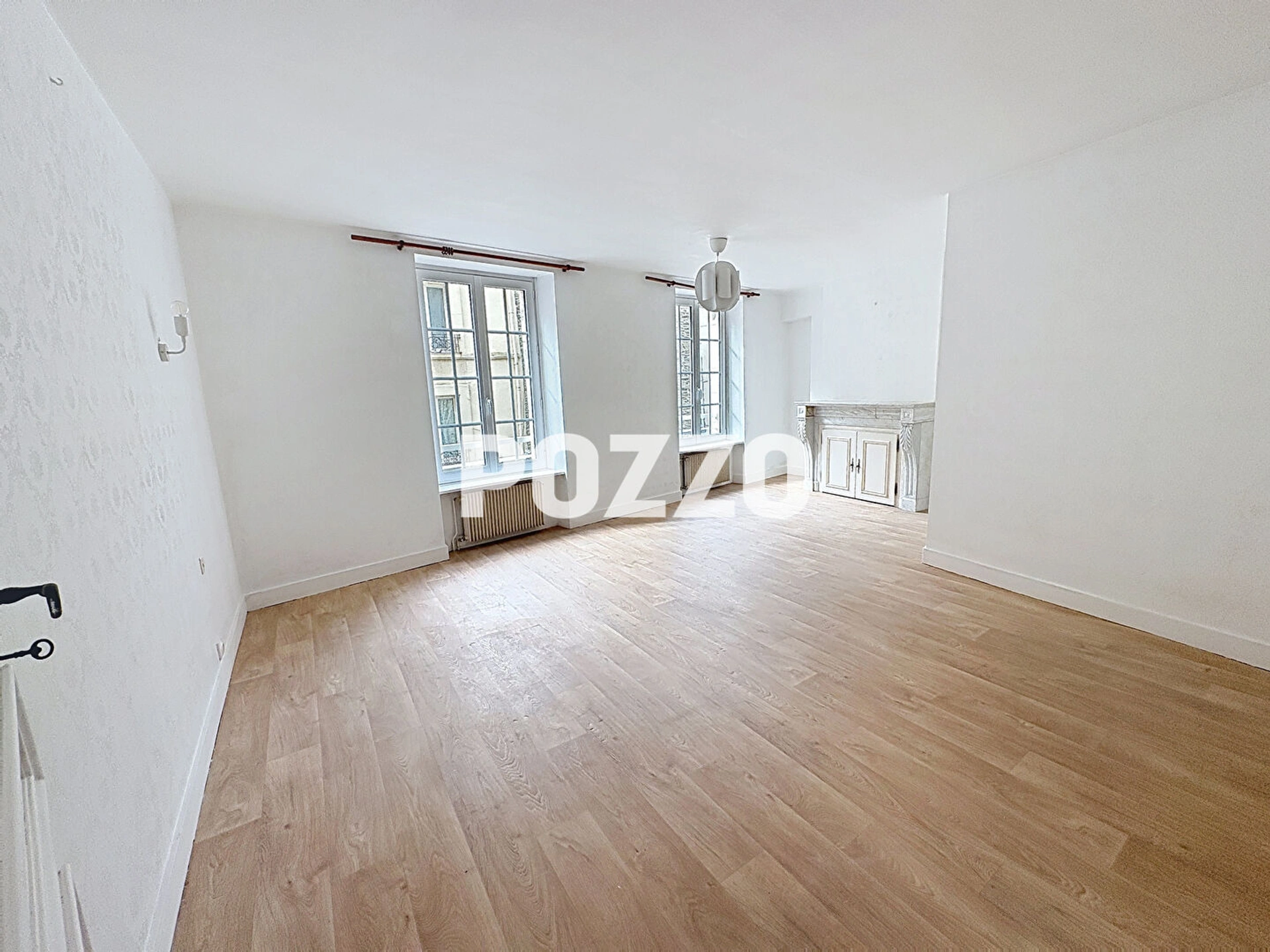 Appartement de type F3 au premier étage à louer à Cherbourg en hyper centre dans un immeuble de caractère comprenant: une cuisine aménagée de 14m², un beau séjour avec cheminée de 25 m², un wc , une salle d'eau et 2 belles chambres de 10 et 19 m2 dont une avec placards.