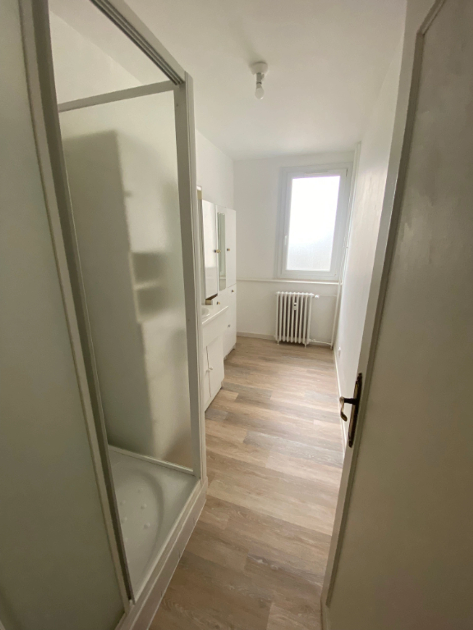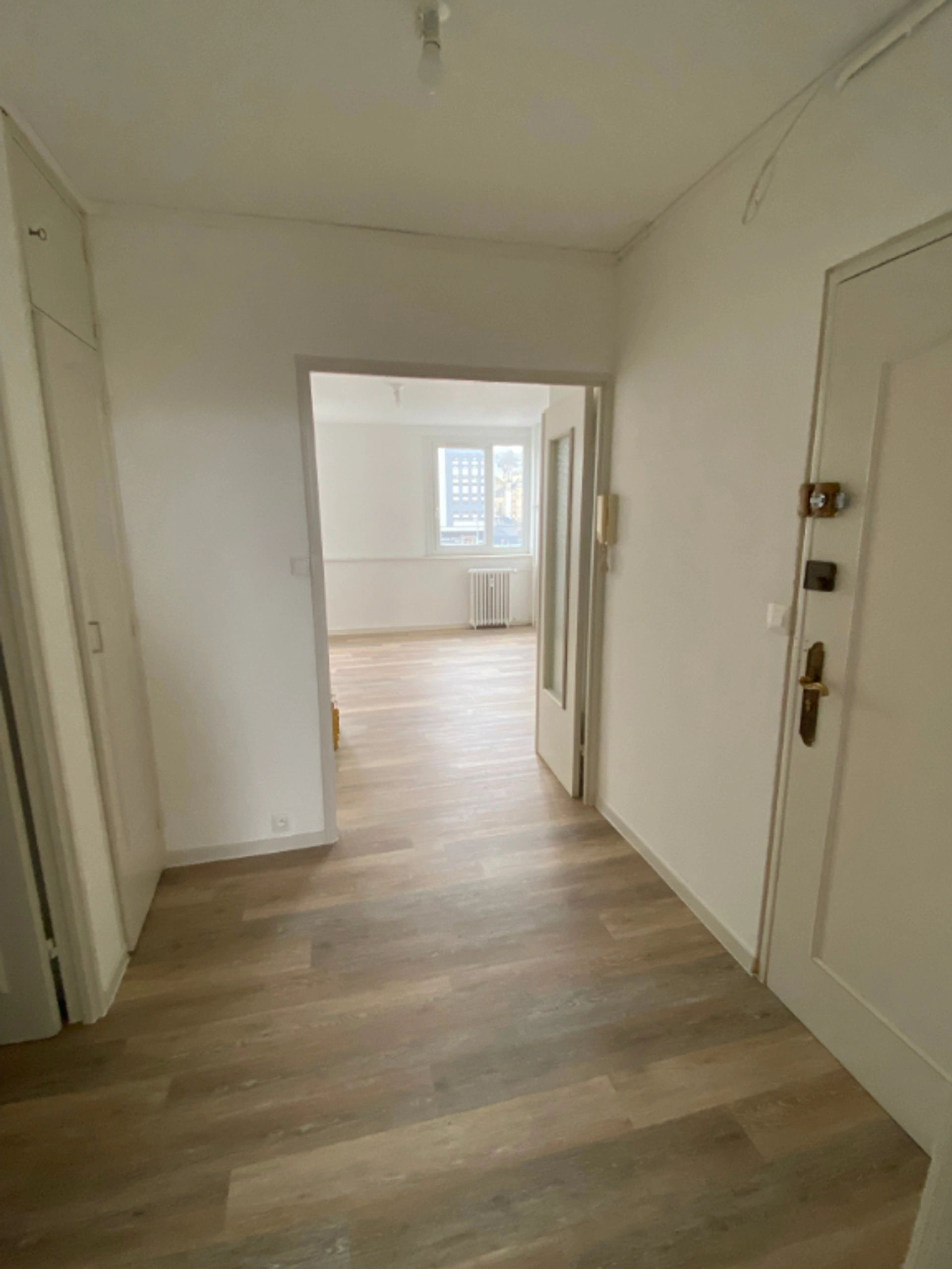 Bel appartement rénové de type F2 en résidence avec ascenseur comprenant: une entrée avec placards, une salle d'eau, un wc, une chambre de 12m², un séjour de 17m², une cuisine aménagée de 7 m² et un débarras. Cave privative.
