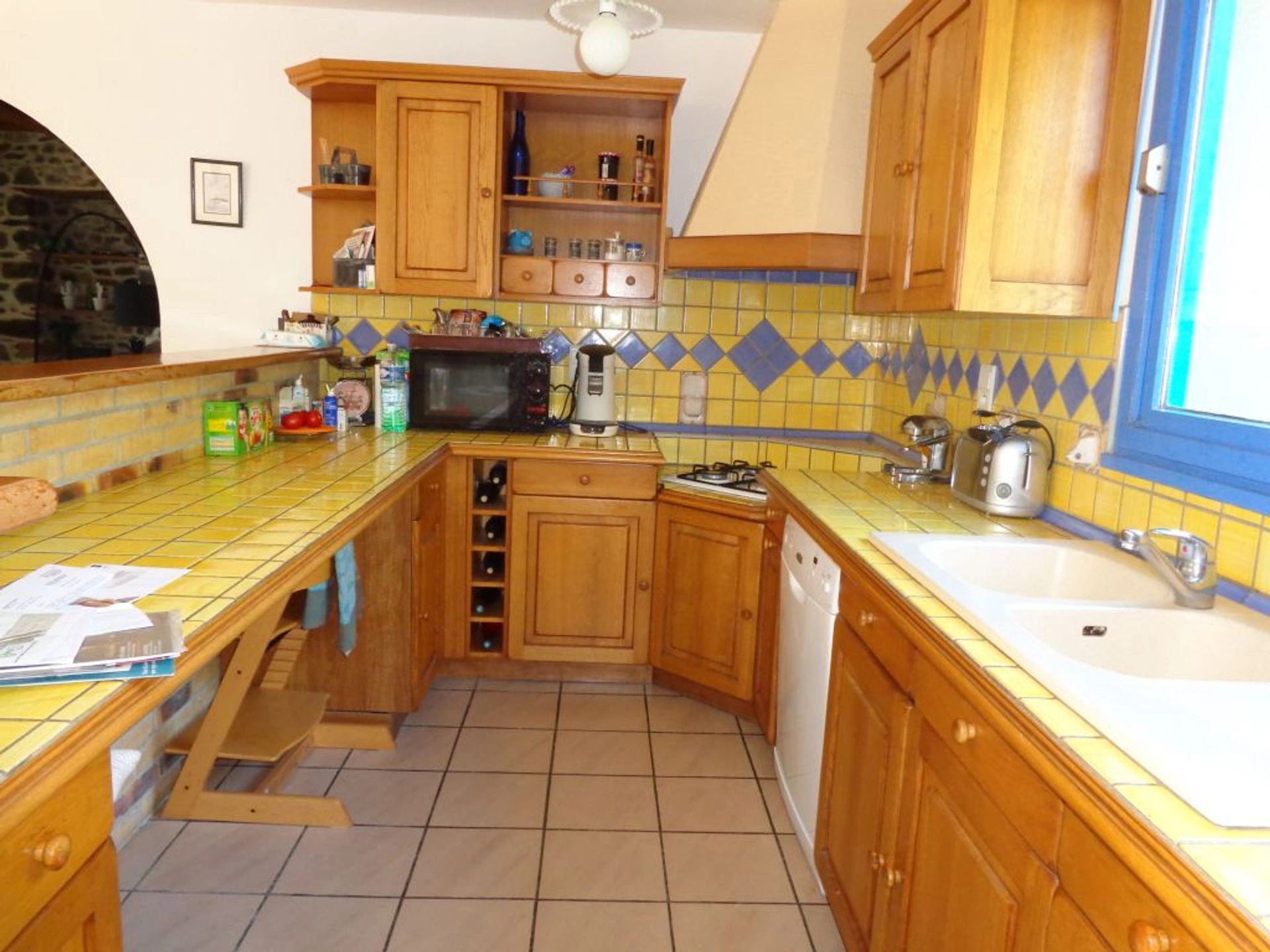 Une maison comprenant : séjour avec coin cuisine aménagée, salon avec cheminée, dégagement, salle d'eau, wc, buanderie, chaufferie. A l'étage : 3 chambres; salle de bains, wc, dressing, débarras. Terrain clos avec terrasse, cour gravillonnées. Chauffage central fuel.