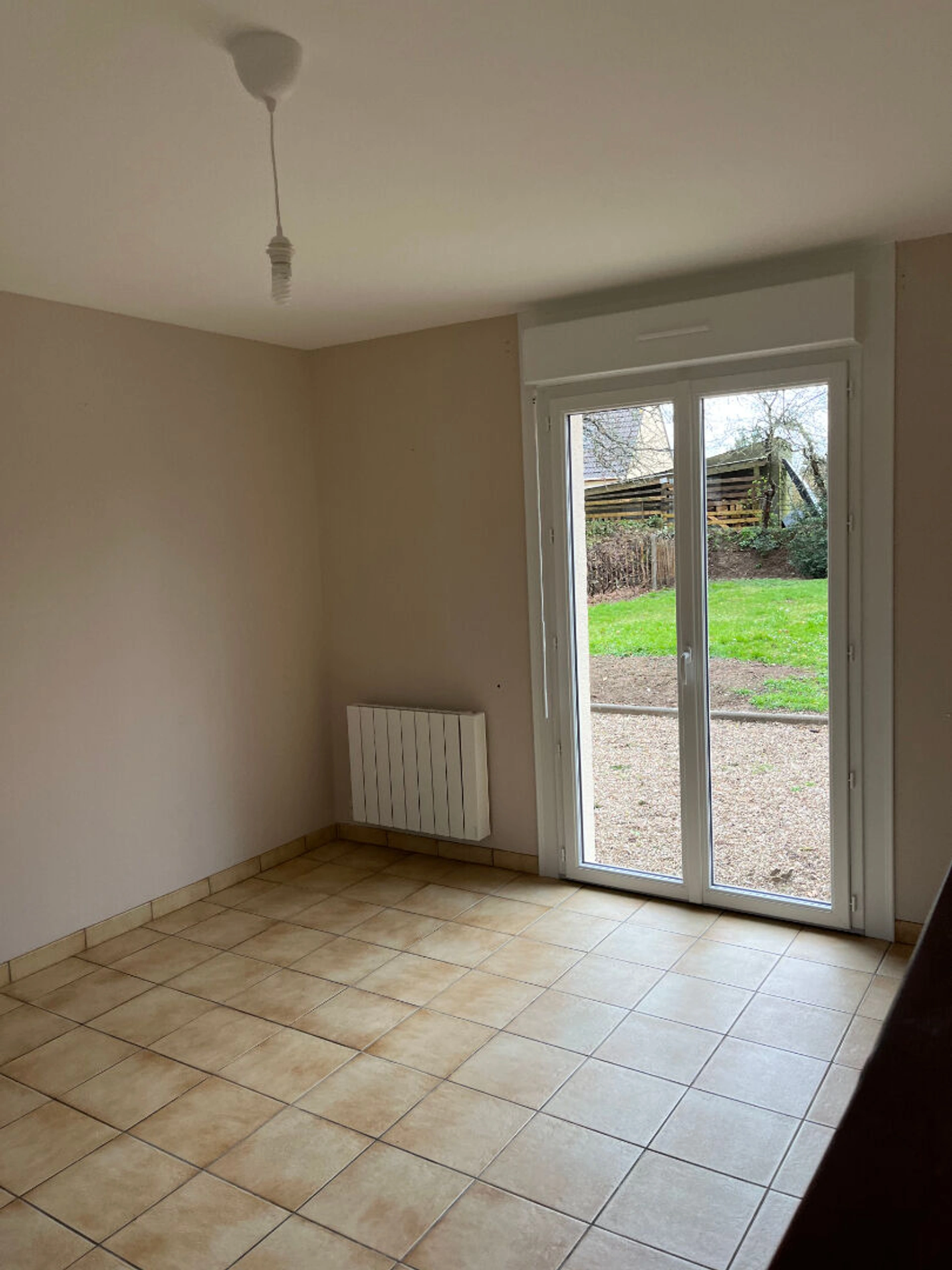 Maison de plain pied, de type F3 à louer comprenant: une entrée, une cuisine aménagée, un séjour de 29m², deux chambres de 10m² et 11,5m², une salle d'eau avec wc.