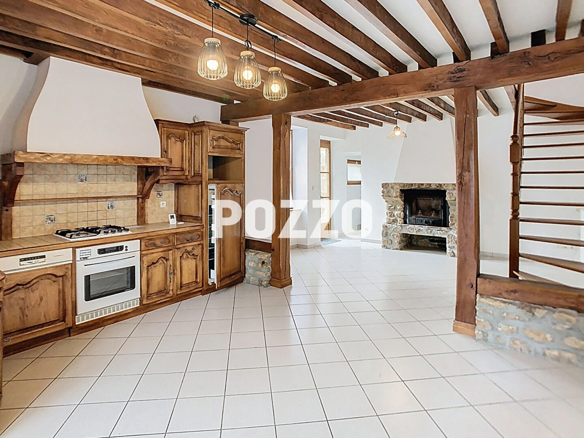 -Au rez-de-chaussée : une pièce de vie avec cuisine aménagée et équipée , salon-séjour, arrière cuisine, w.c.