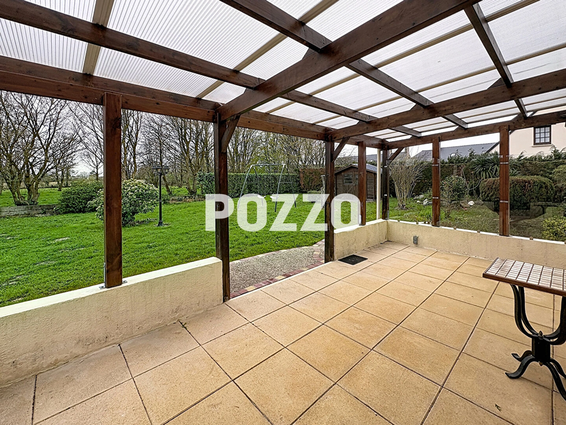 Jardin, terrasse, pergola, abri de jardin.
