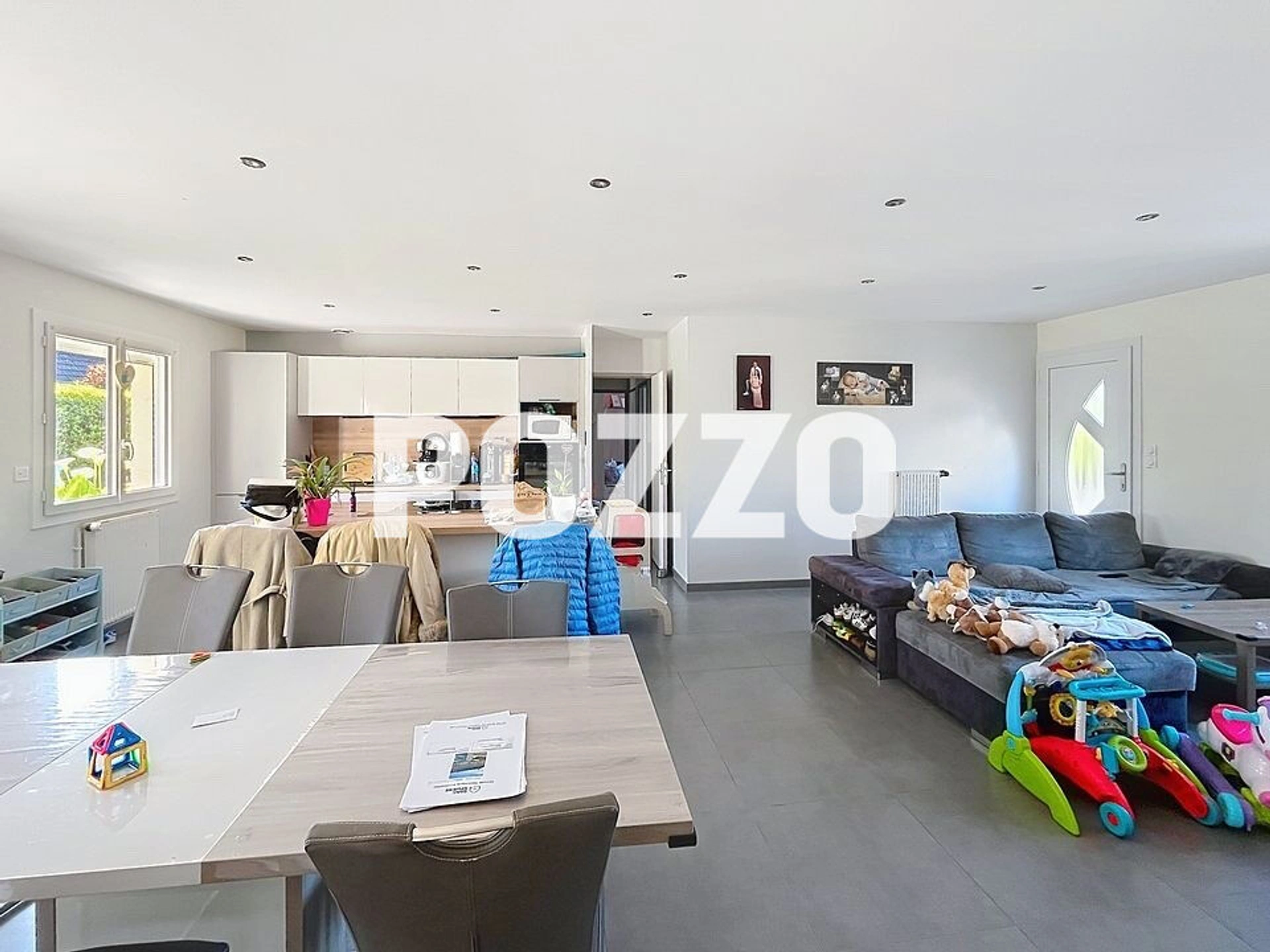 Vous retrouverez au rez-de-chaussée un grand salon séjour avec sa cuisine ouverte aménagée et équipée, un couloir avec placards desservant 3 chambres, une salle d'eau et un WC .
