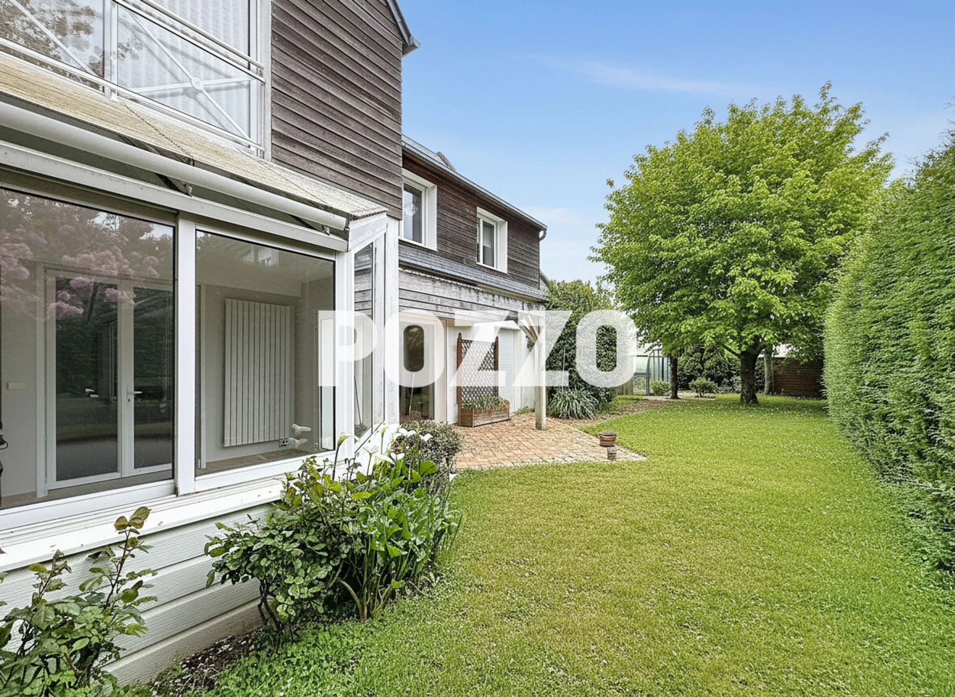 A l'extérieur, vous profitez d'un jardin clos et arboré de 839 m², d'une terrasse bien exposée et d'une piscine couverte et chauffée, utilisable toute l'année.