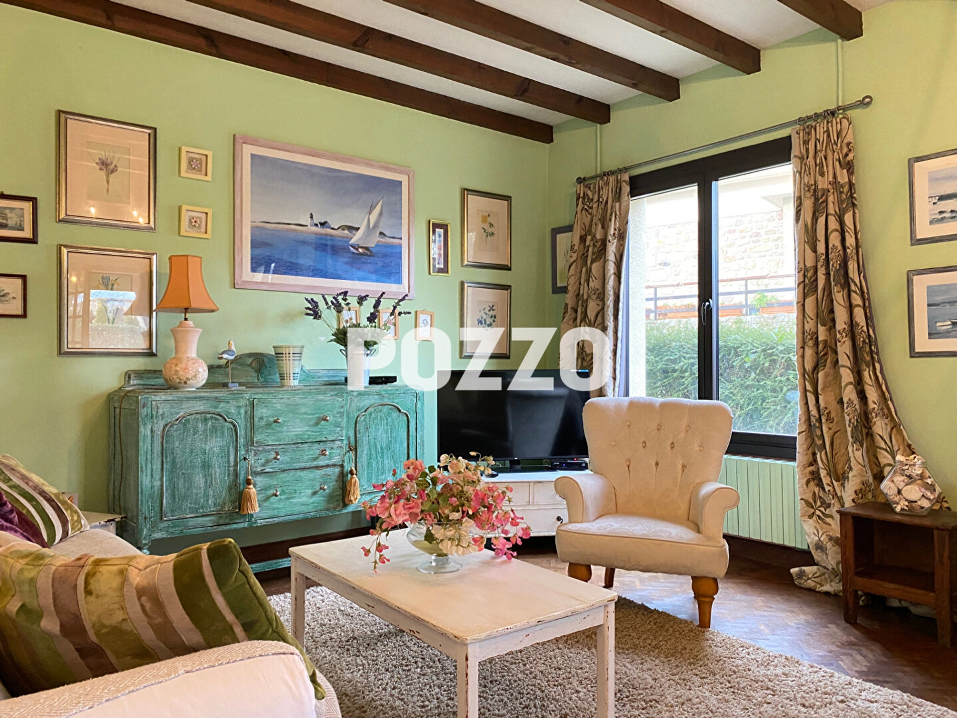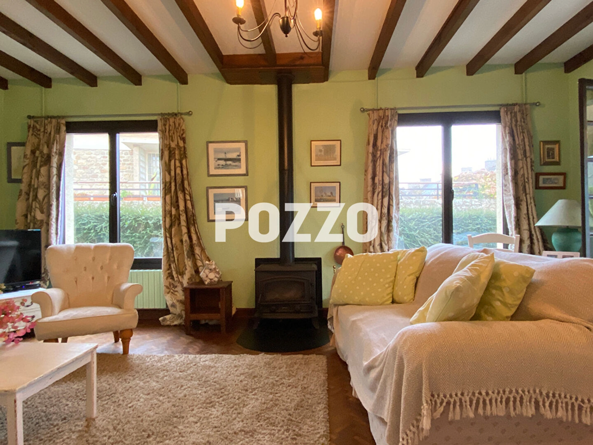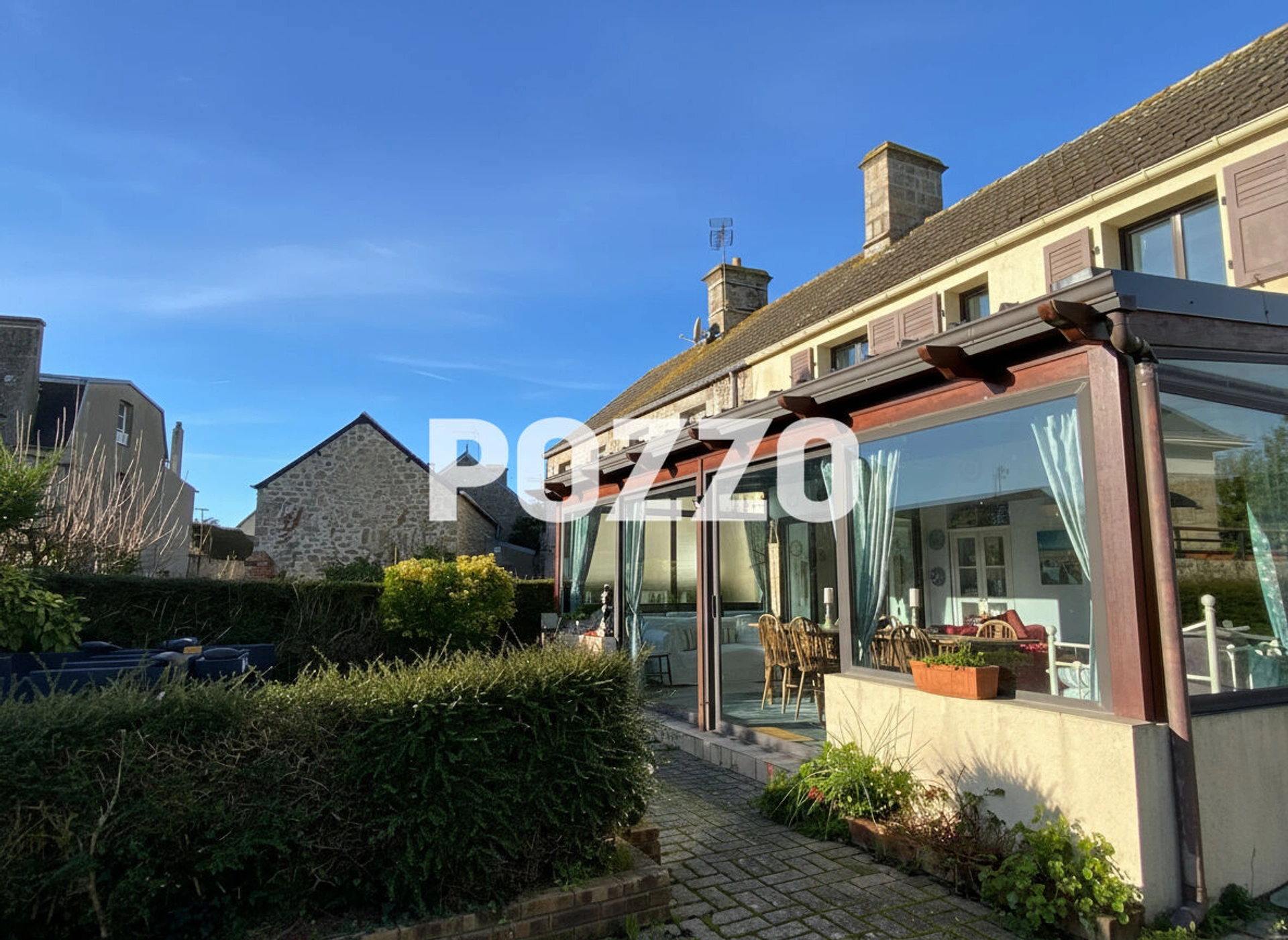 La cuisine et le salon, très cosy, s'ouvrent sur une salle à manger en véranda, puis sur la grande terrasse (bien exposée).