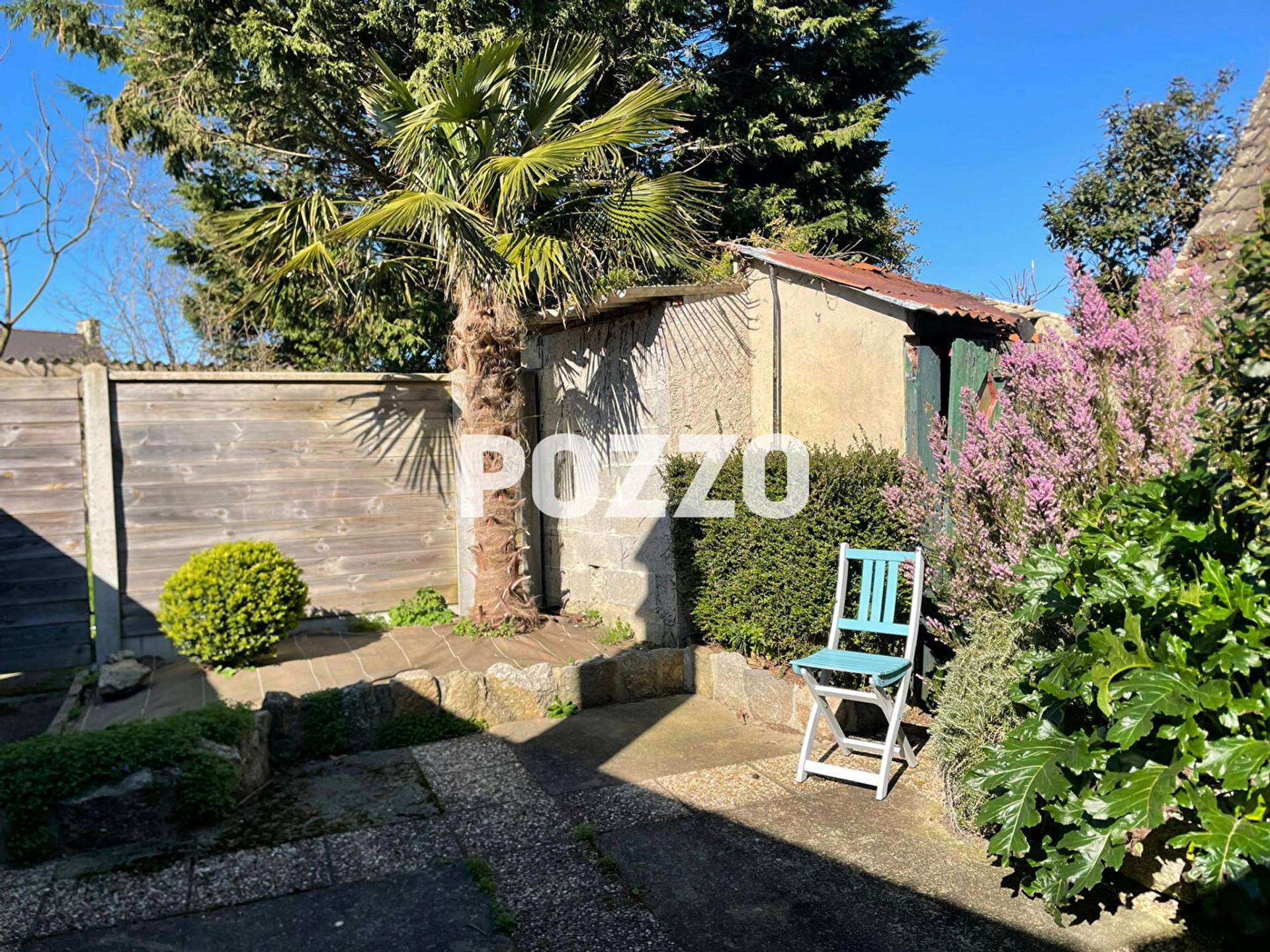 Côté extérieur, une cour/terrasse abritée du vent et des regards, pour les moments de détente tranquilles.