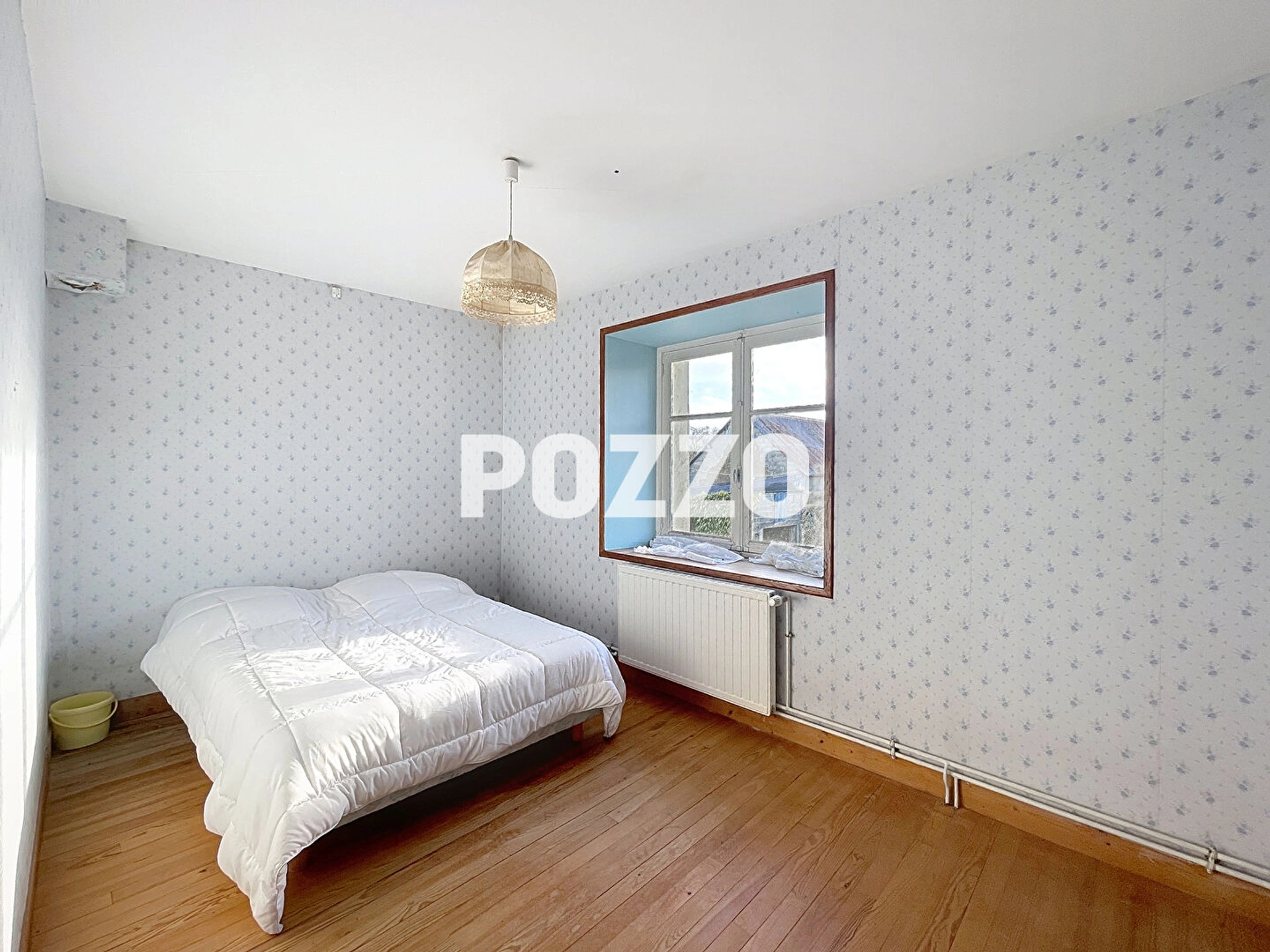 A l'étage il y a quatre chambres.