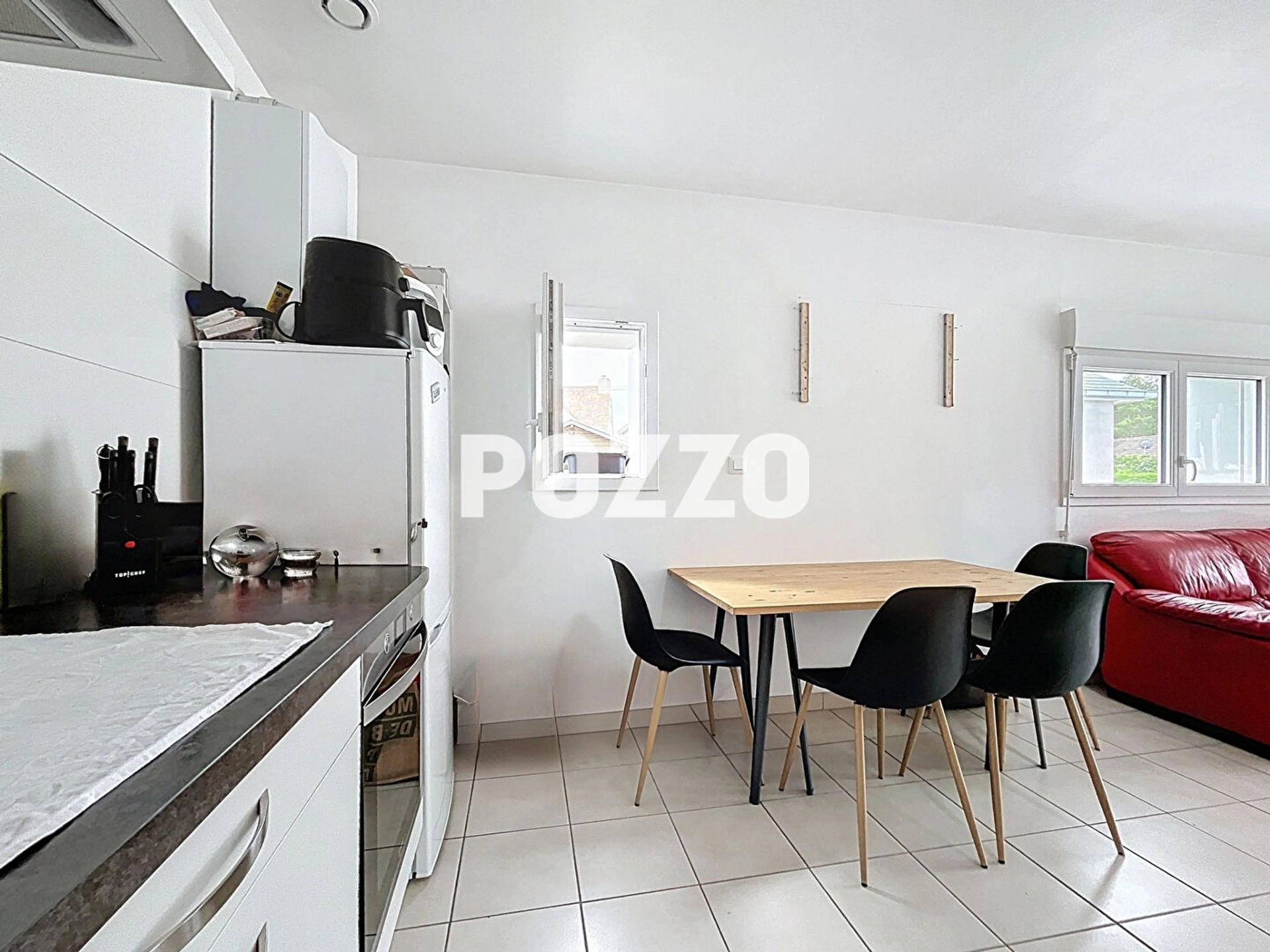 - Au rez-de-chaussée : une pièce de vie lumineuse avec cuisine aménagée et équipée.