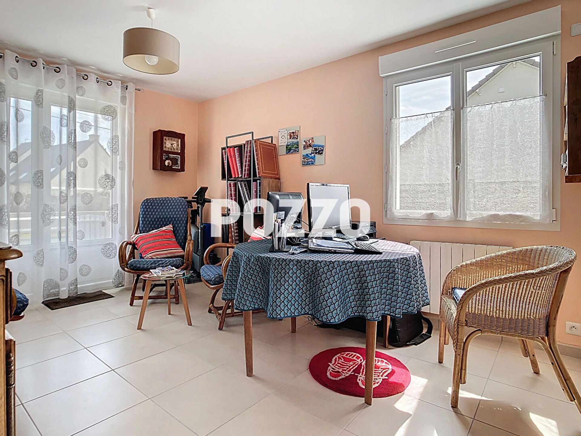 -entrée/bureau, vaste pièce de vie avec cuisine ouverte aménagée et équipée, deux chambres, salle d'eau et WC.