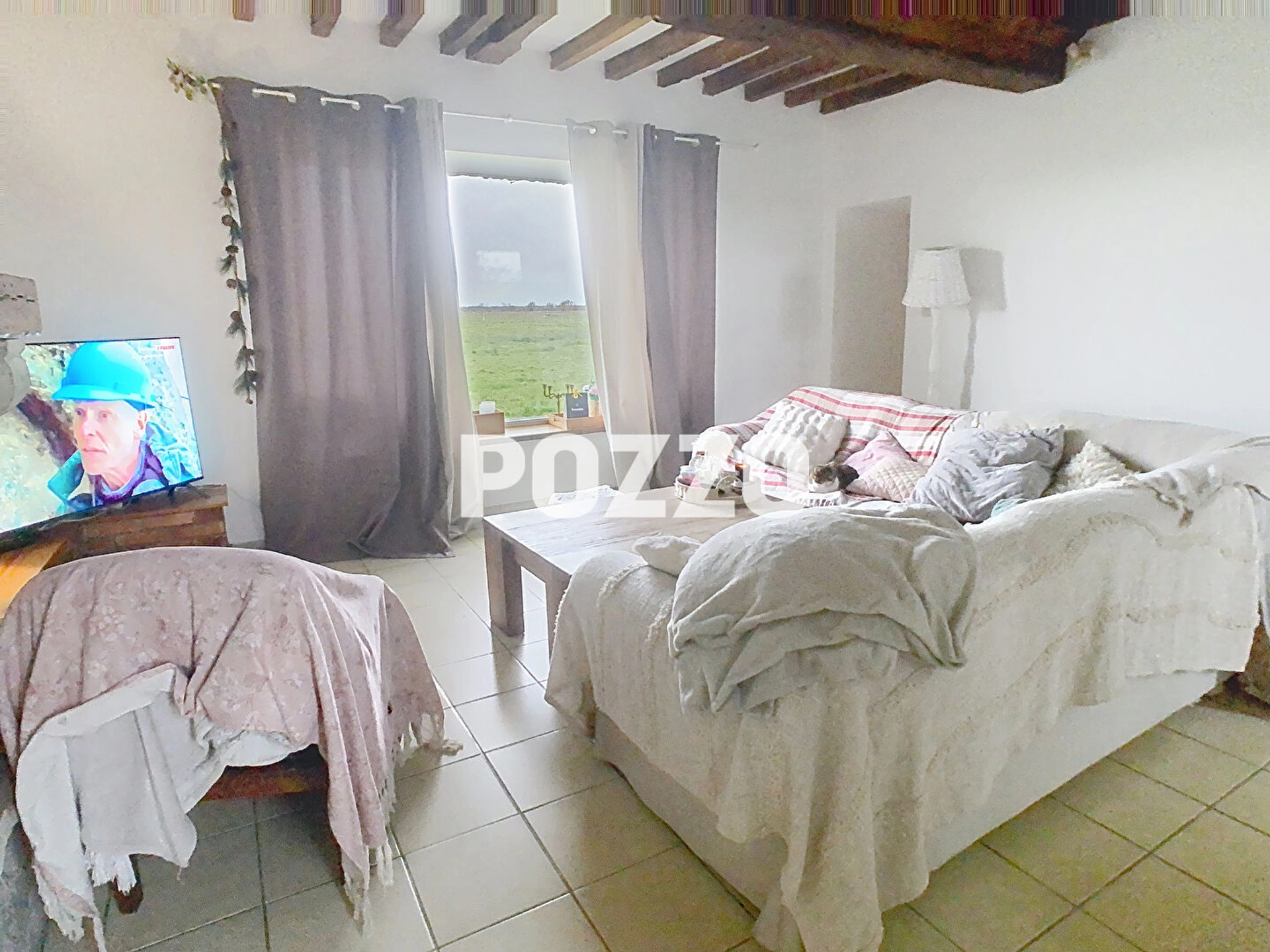 Pozzo immobilier vous propose une maison de plain-pied actuellement louée (bail en cours) comprenant une grande cuisine aménagée, un salon avec cheminée et insert, deux grandes chambres, une salle d'eau avec wc. Jardin. Terrain de 709m²