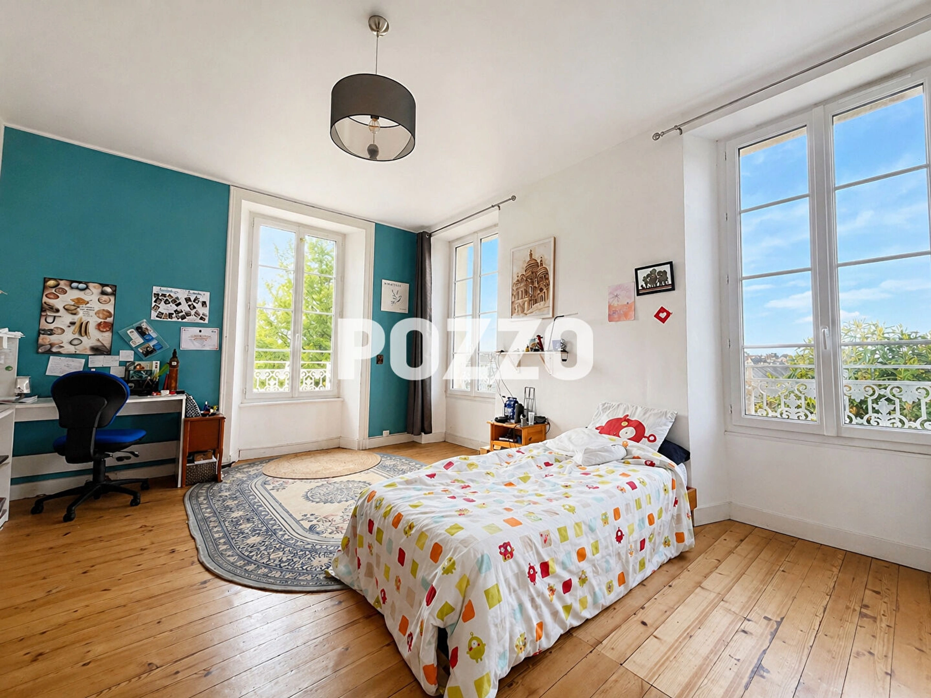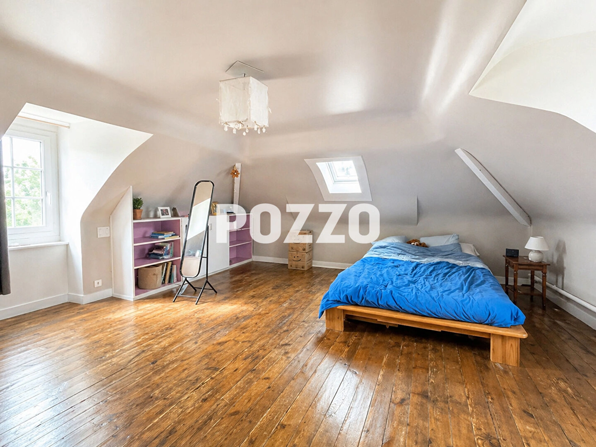 Au deuxième étage, vous retrouvez deux chambres d'environ 15 m² chacune, toutes deux avec point d'eau, ainsi qu'une pièce traversante d'environ 13 m² pouvant faire office de chambre complémentaire, bureau ou espace loisirs, et une pièce annexe d'environ 5 m².