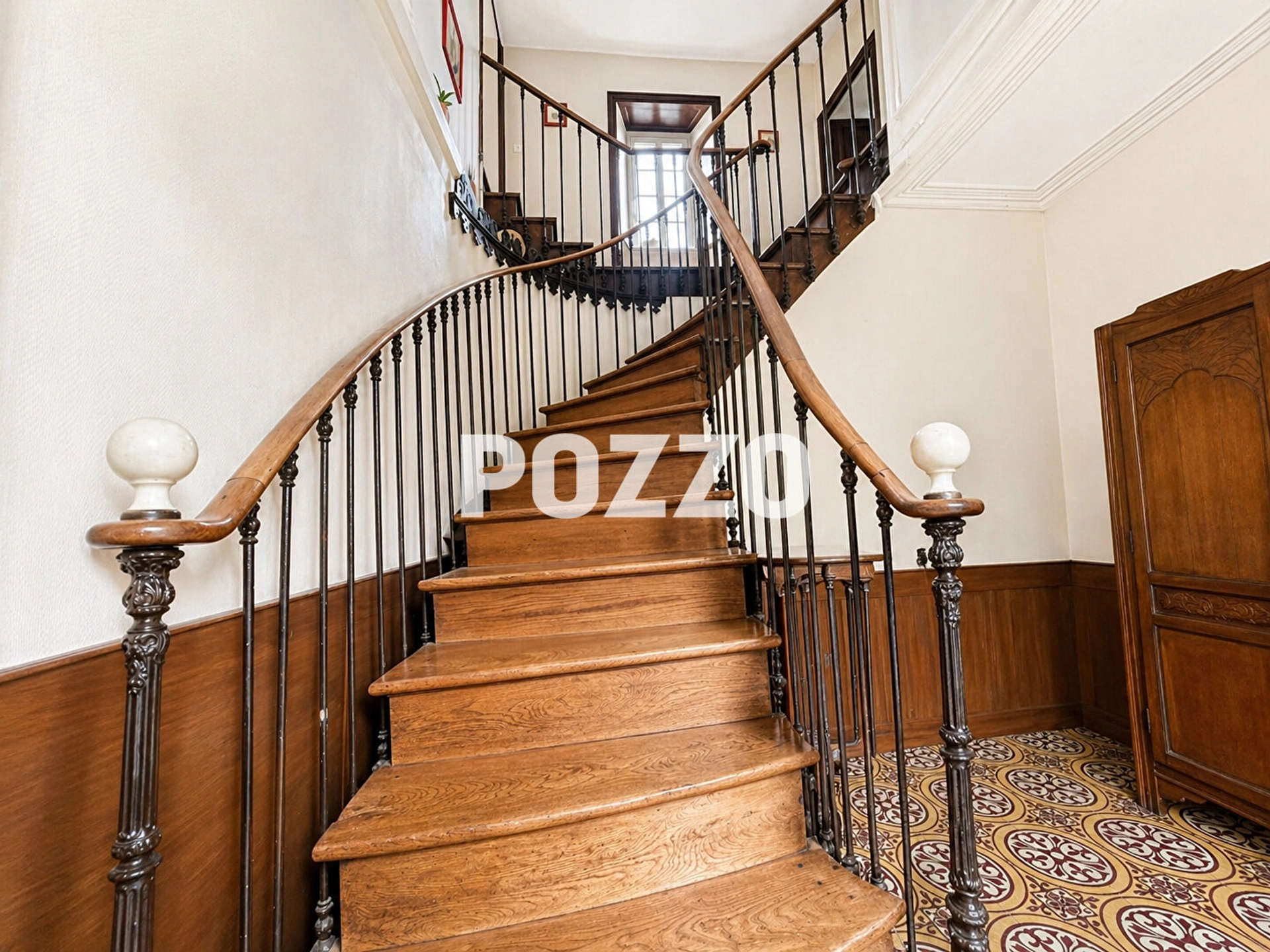 Au premier étage, un palier dessert trois chambres d'environ 20 m², 17 m² et 20 m², dont une avec possibilité de création de salle d'eau pour compléter un espace parental, un bureau, plusieurs dégagements avec placards, ainsi qu'une salle d'eau avec WC.