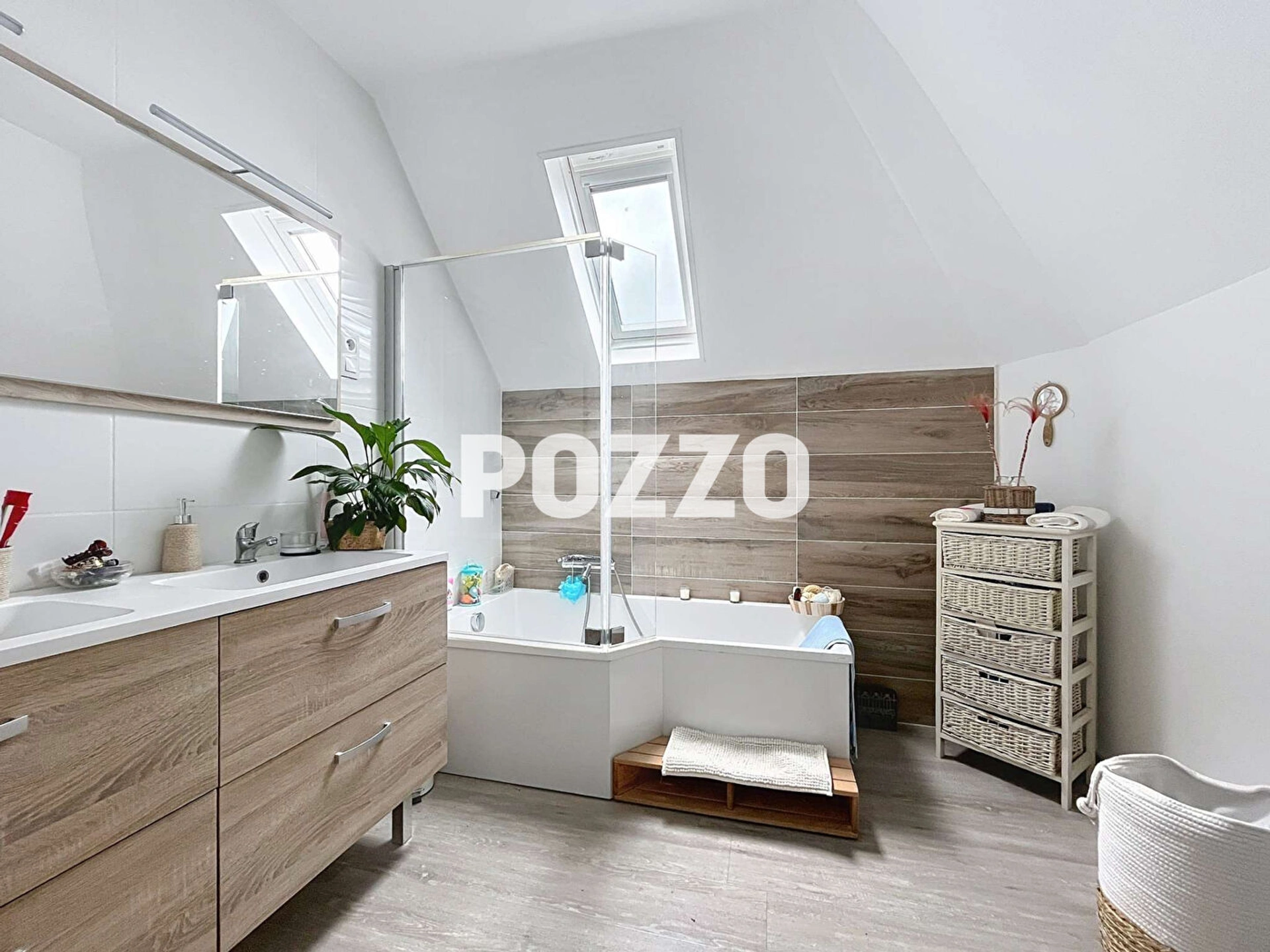 Le sous-sol complet de 75 m² comprend un double garage, un atelier, une salle de sport, et une cave, offrant ainsi de nombreux rangements et espaces supplémentaires.