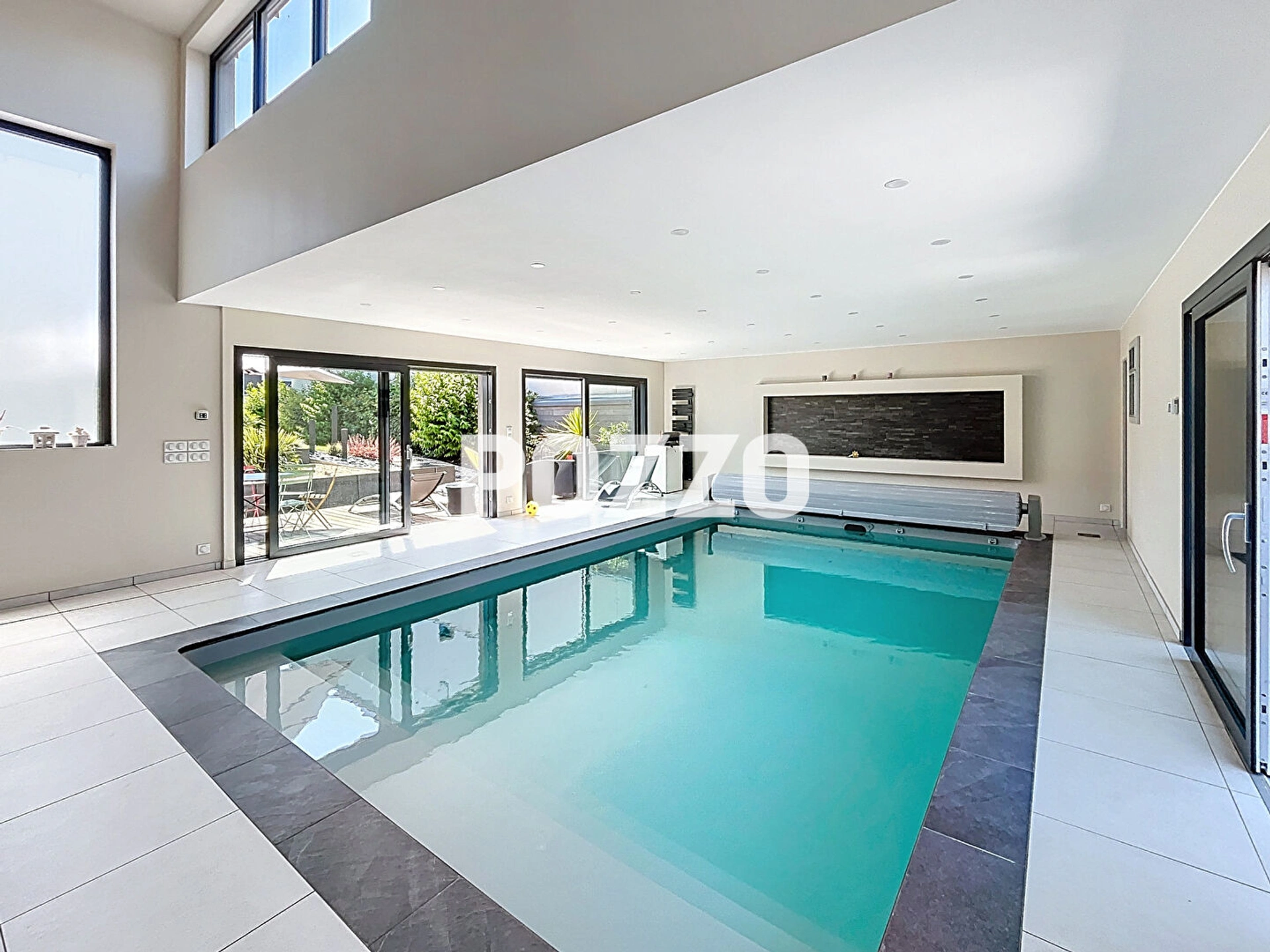 Cette extension abrite un espace piscine intérieure chauffée, véritable havre de détente, s'ouvrant sur une agréable terrasse privative exposée plein Sud, idéale pour profiter des beaux jours en toute intimité.