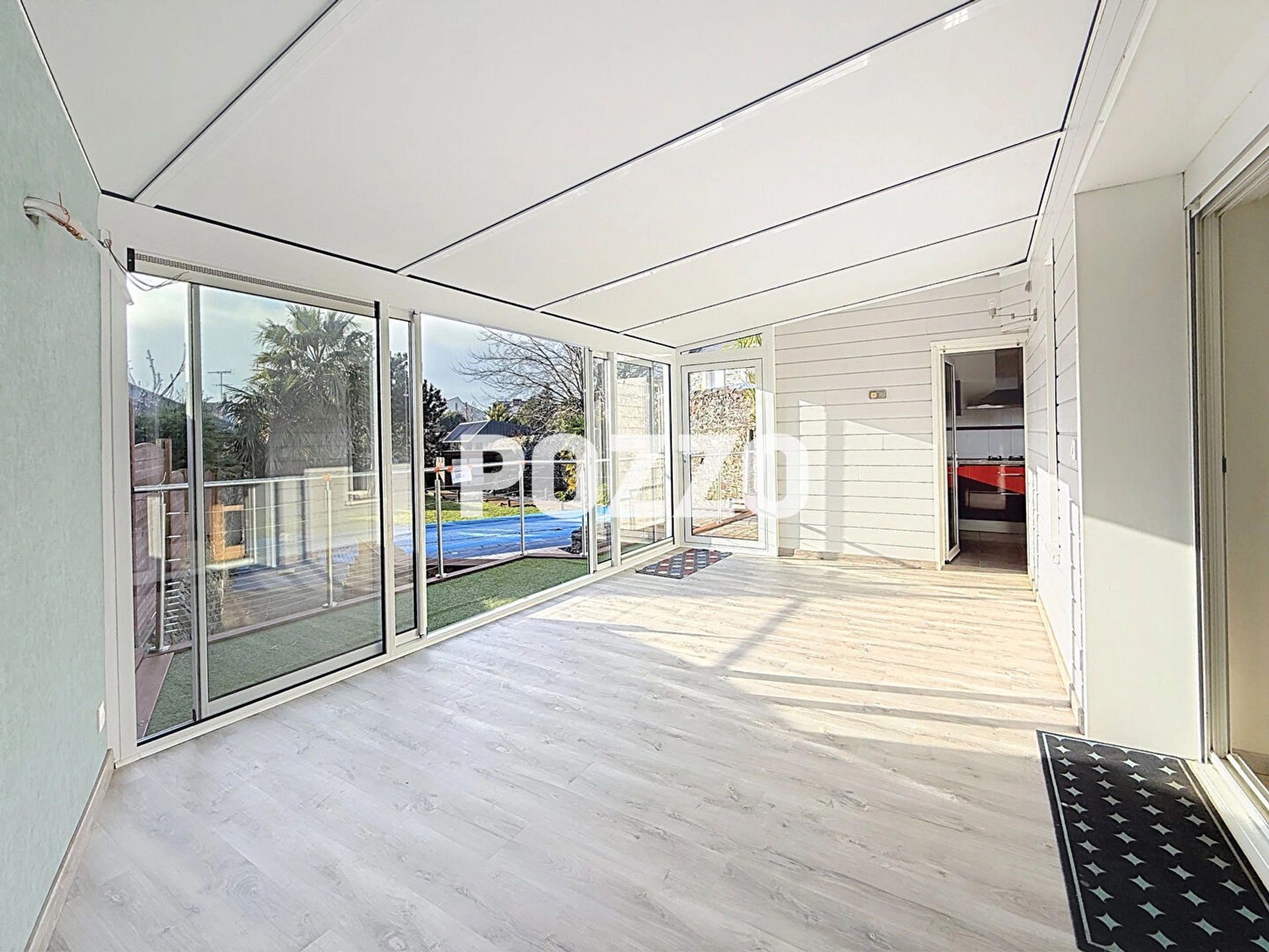 Au rez-de-chaussée : entrée, agréable séjour, cuisine aménagée et équipée, arrière-cuisine, véranda neuve d'environ 20 m², garage attenant de 23 m².