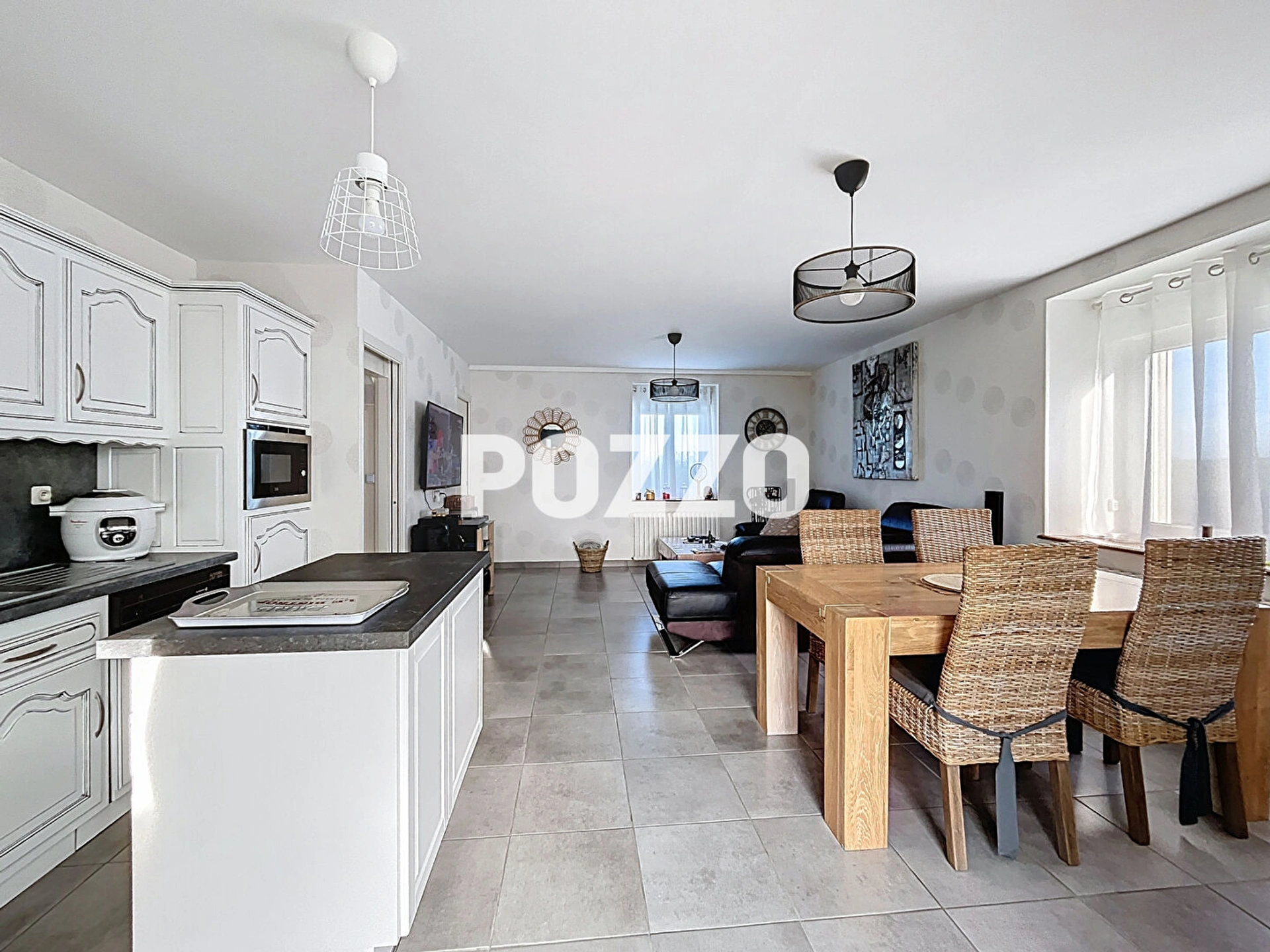 Un vaste salon/séjour lumineux ouvert, idéal pour recevoir ou profiter de moments conviviaux en famille