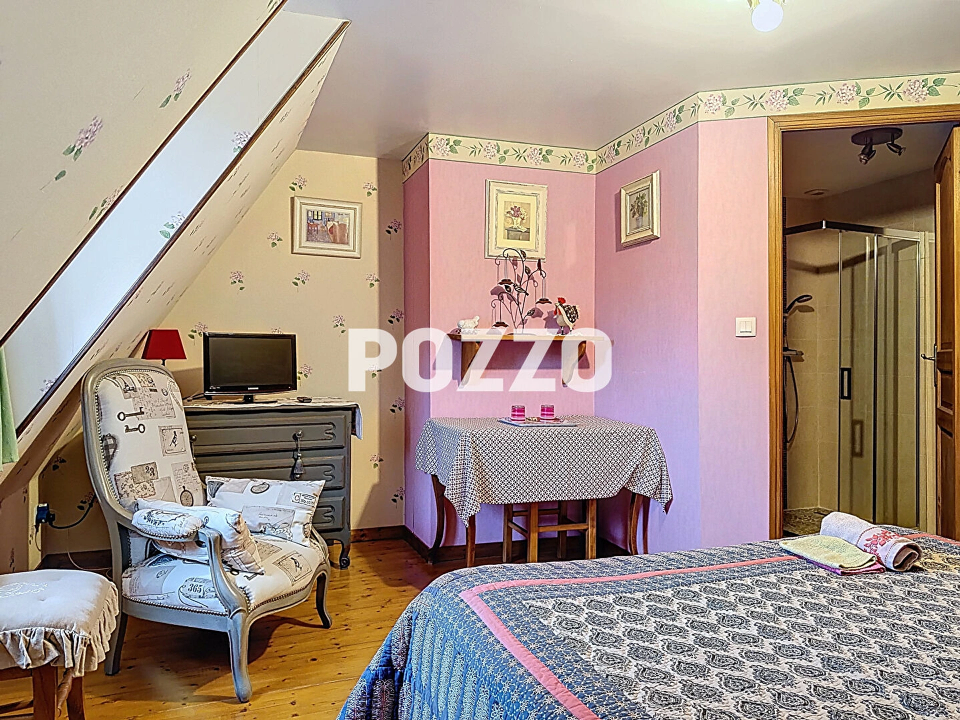 A l'étage, un long couloir dessert quatre belles chambres lumineuses, chacune disposant de sa salle de douche et de son WC, offrant confort et intimité. De l'autre côté, trois chambres supplémentaires sous les combles apportent encore de belles possibilités d'aménagement, certaines bénéficiant également de leur propre salle d'eau et WC.