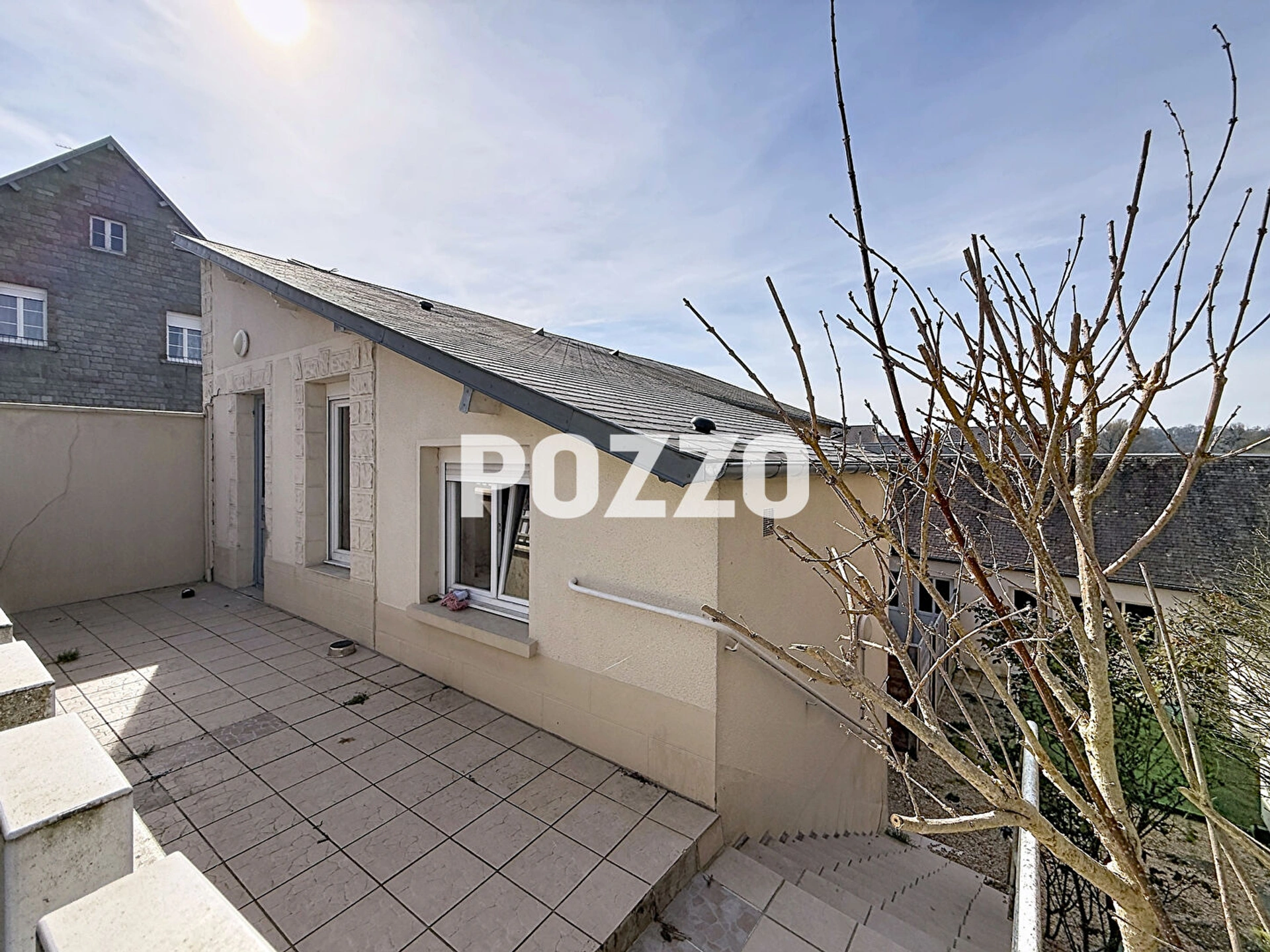 A l'étage, un appartement de 52,83 m² actuellement loué 600 euros par mois, comprenant deux chambres, une salle d'eau et une cuisine aménagée et équipée. Ce logement dispose également d'une cour et d'un garage. Il sera libre au 1er septembre 2026.