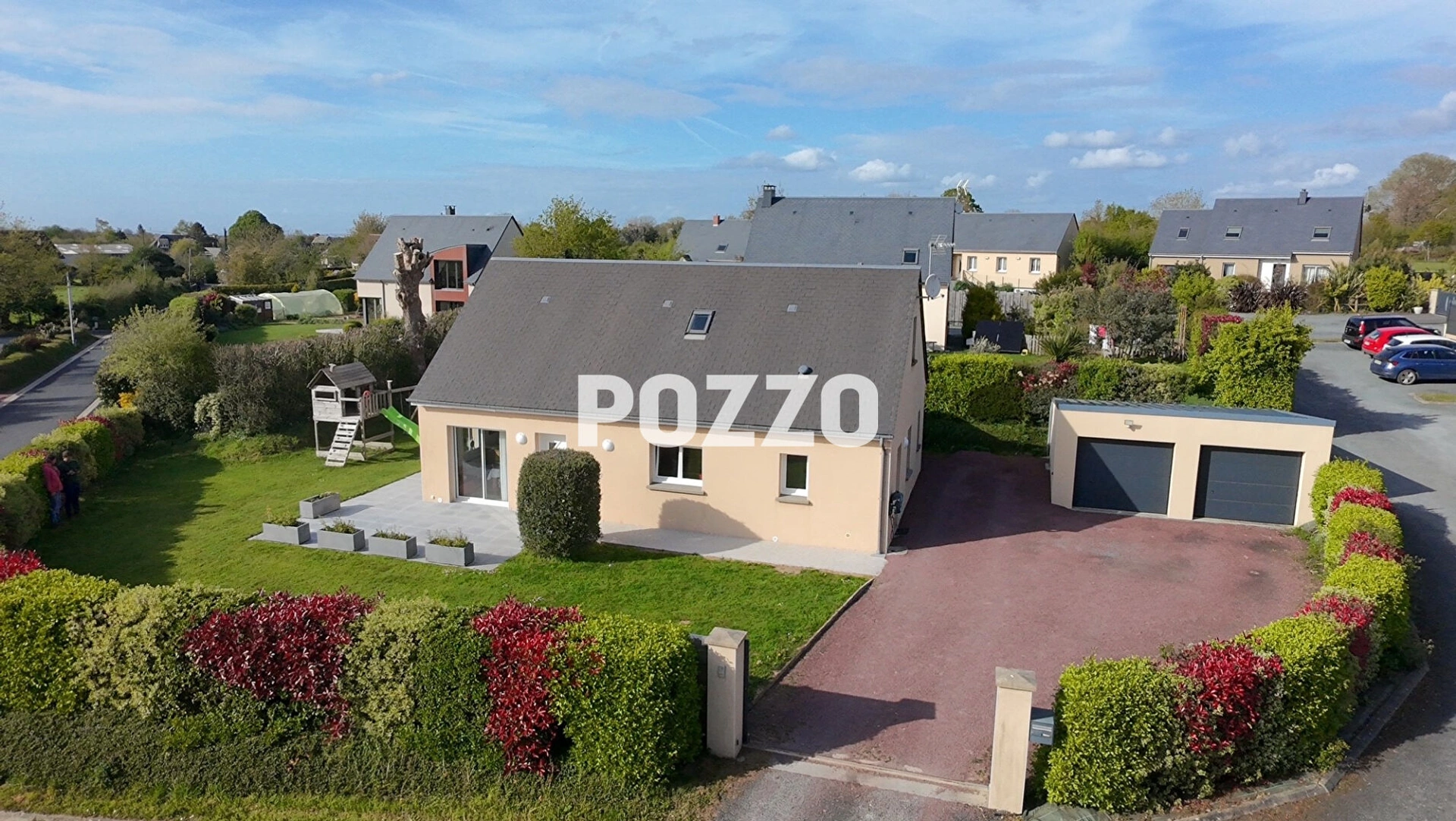 Terrasse exposée sud-ouest, double garage, Terrain de 658 m².