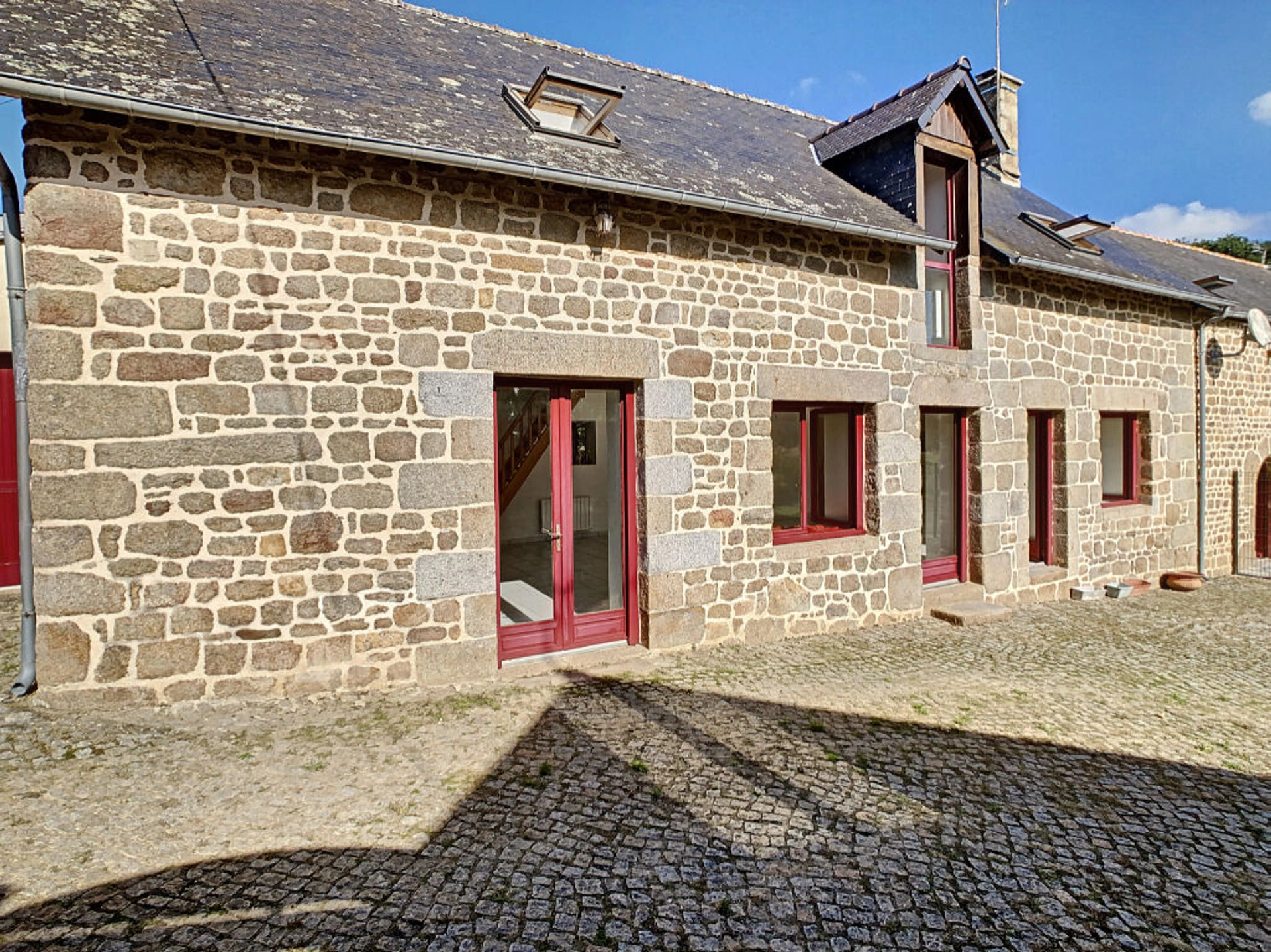 2) A la suite, une seconde longère de 135m² composée de : - au rez de chausée : une pièce de vie, coin cuisine aménagée ; - à l'étage : mezzanine, salle d'eau avec WC, trois chambres. Grange à la suite en pierres sous ardoises, fournil , garage double sur l'arrière.