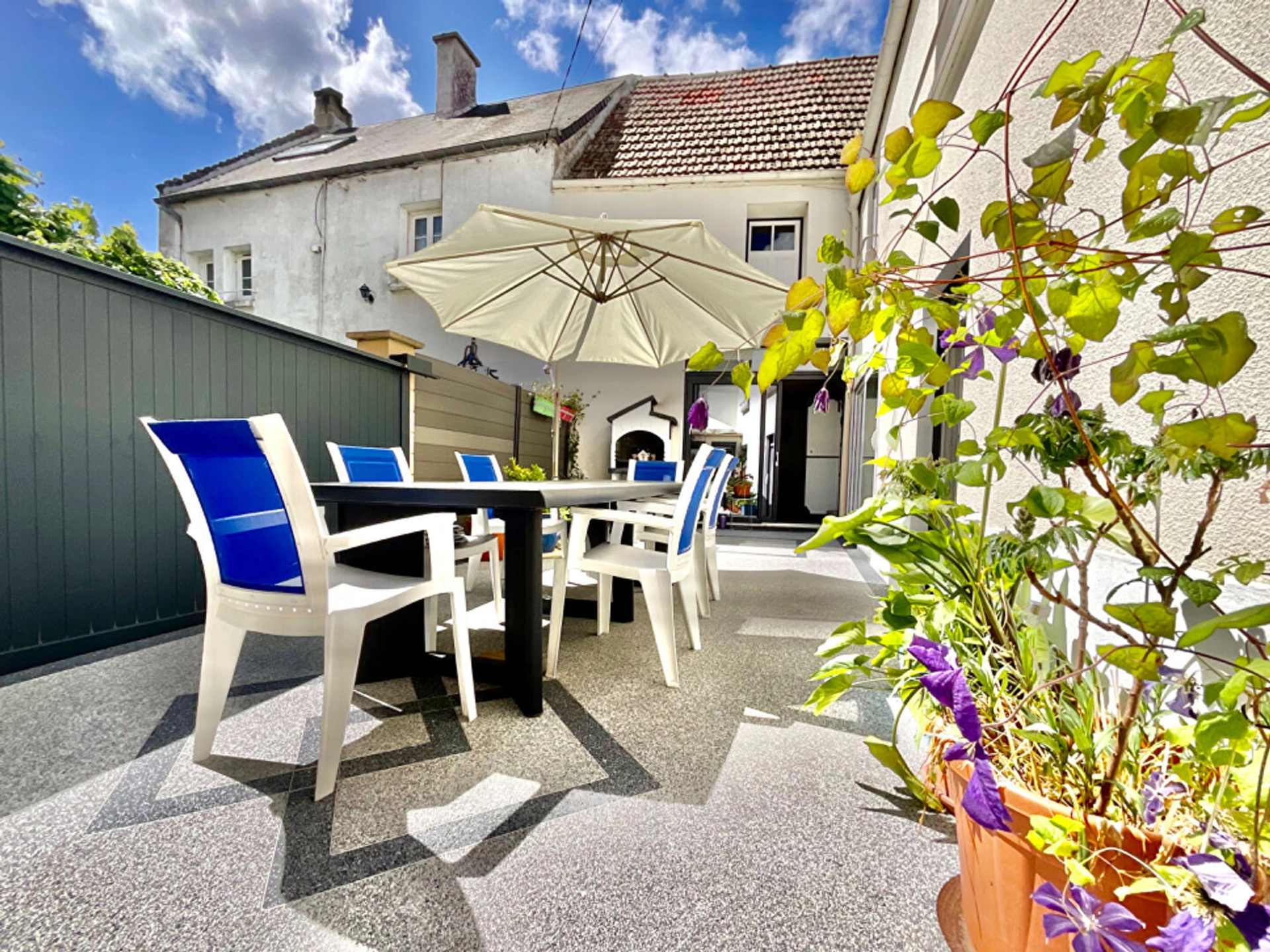 A l'extérieur, une terrasse très bien exposée, idéale pour profiter du soleil et des repas en extérieur.