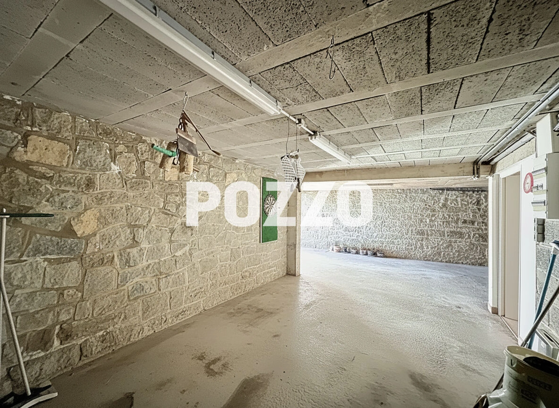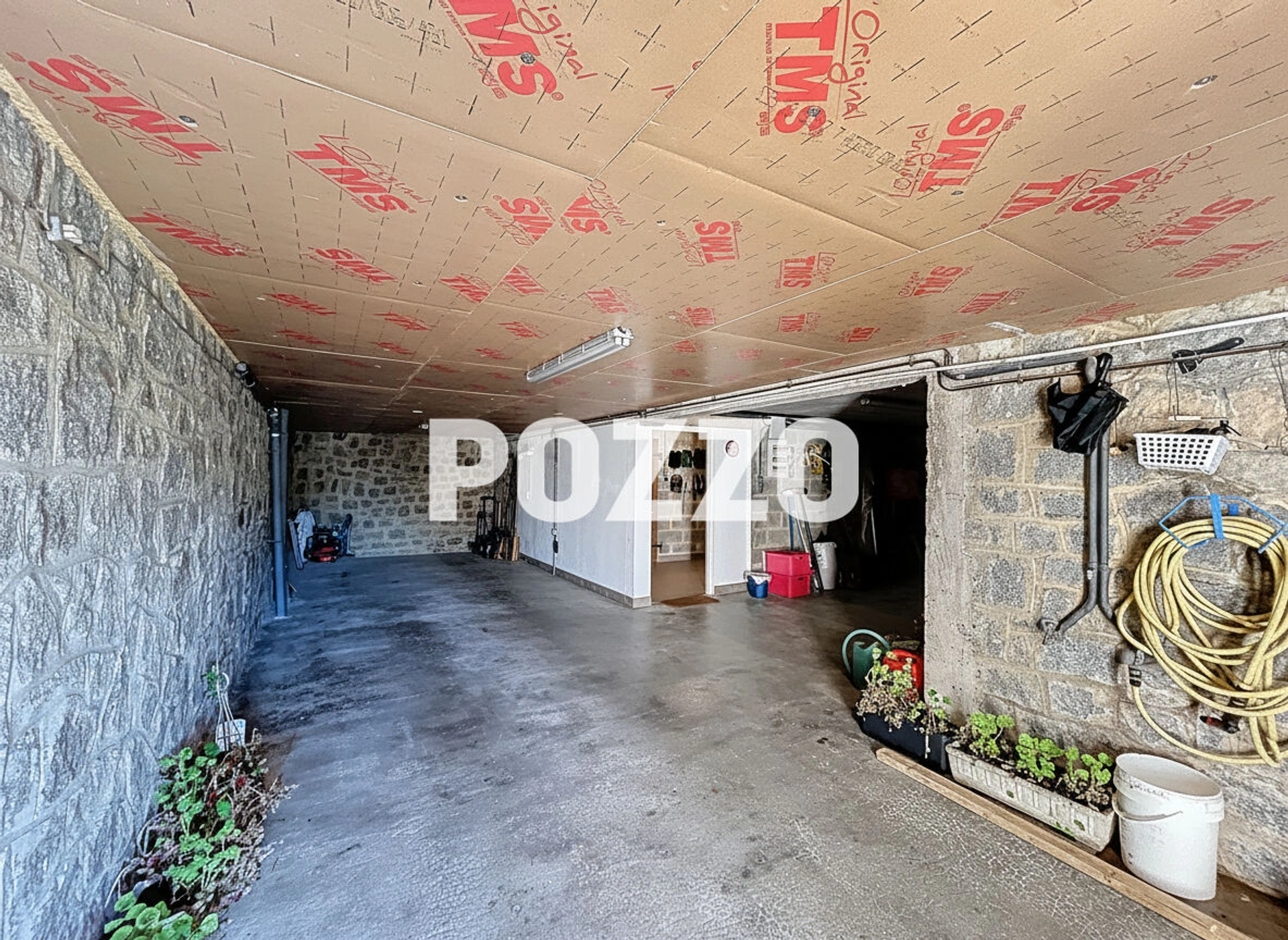 Sous-sol complet avec de nombreux espace de stockage : garage 2-3 véhicules, atelier, arrière cuisine, cave à vin, WC.