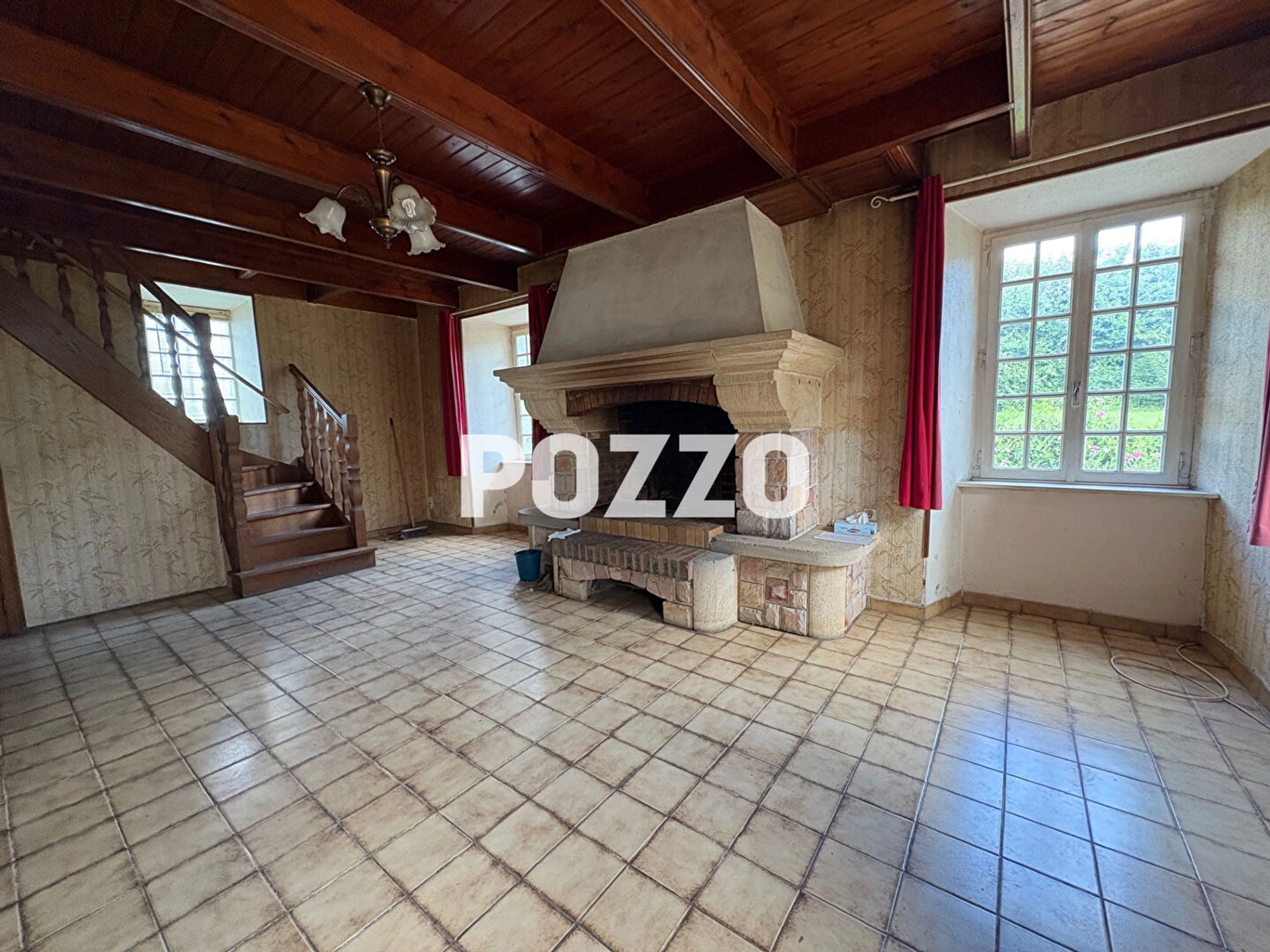 Au rez-de-chaussée, on trouve un séjour avec cheminée, une cuisine aménagée, une arrière-cuisine avec cheminée, deux pièces, un WC, une véranda.