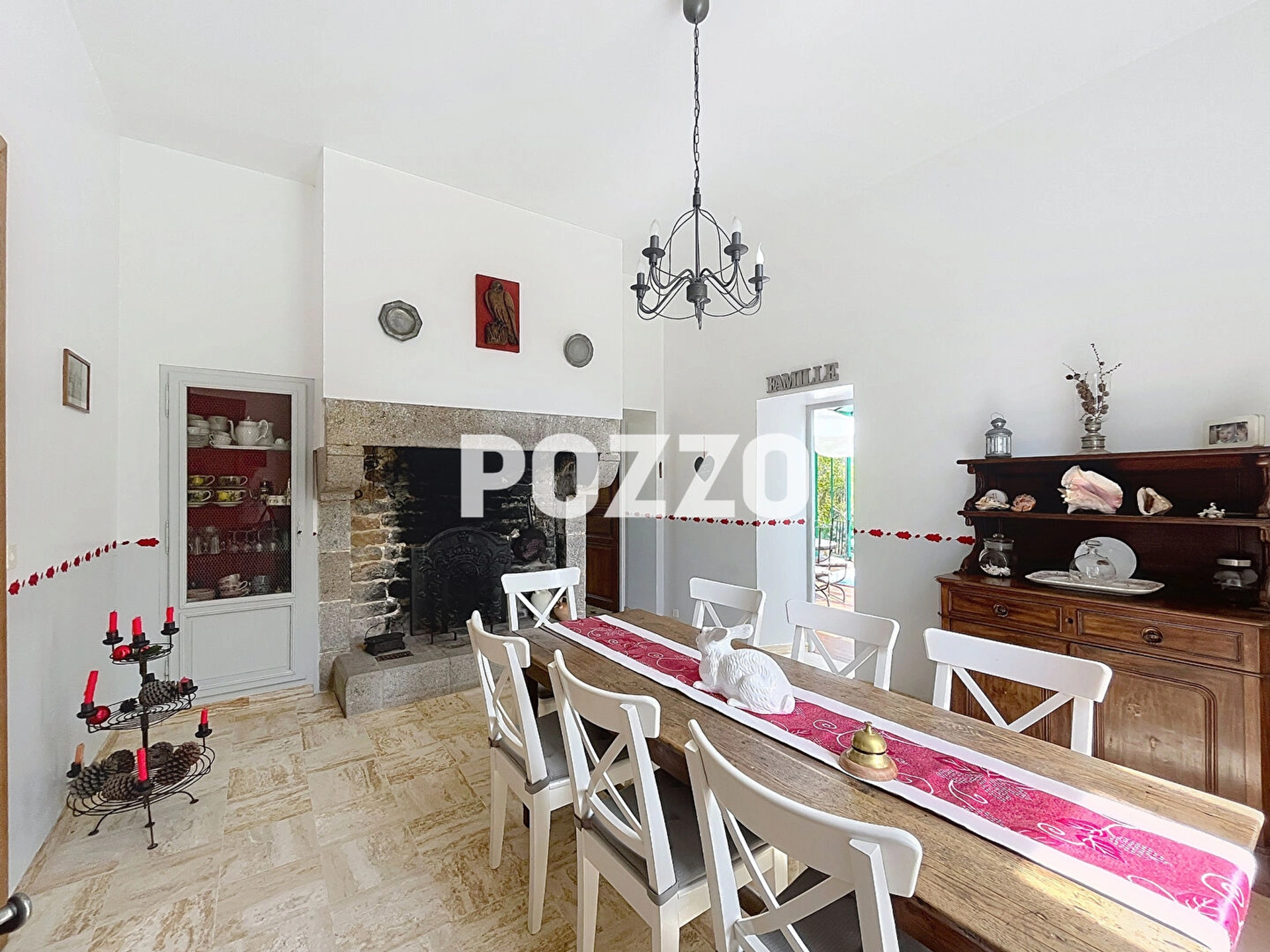 Maison comprenant : une entrée, un hall, une salle à manger exposée au sud avec cheminée en pierres, une cuisine aménagée équipée, un bureau exposé sud (également avec cheminée en pierres), une salle d'eau, une grande buanderie avec WC.