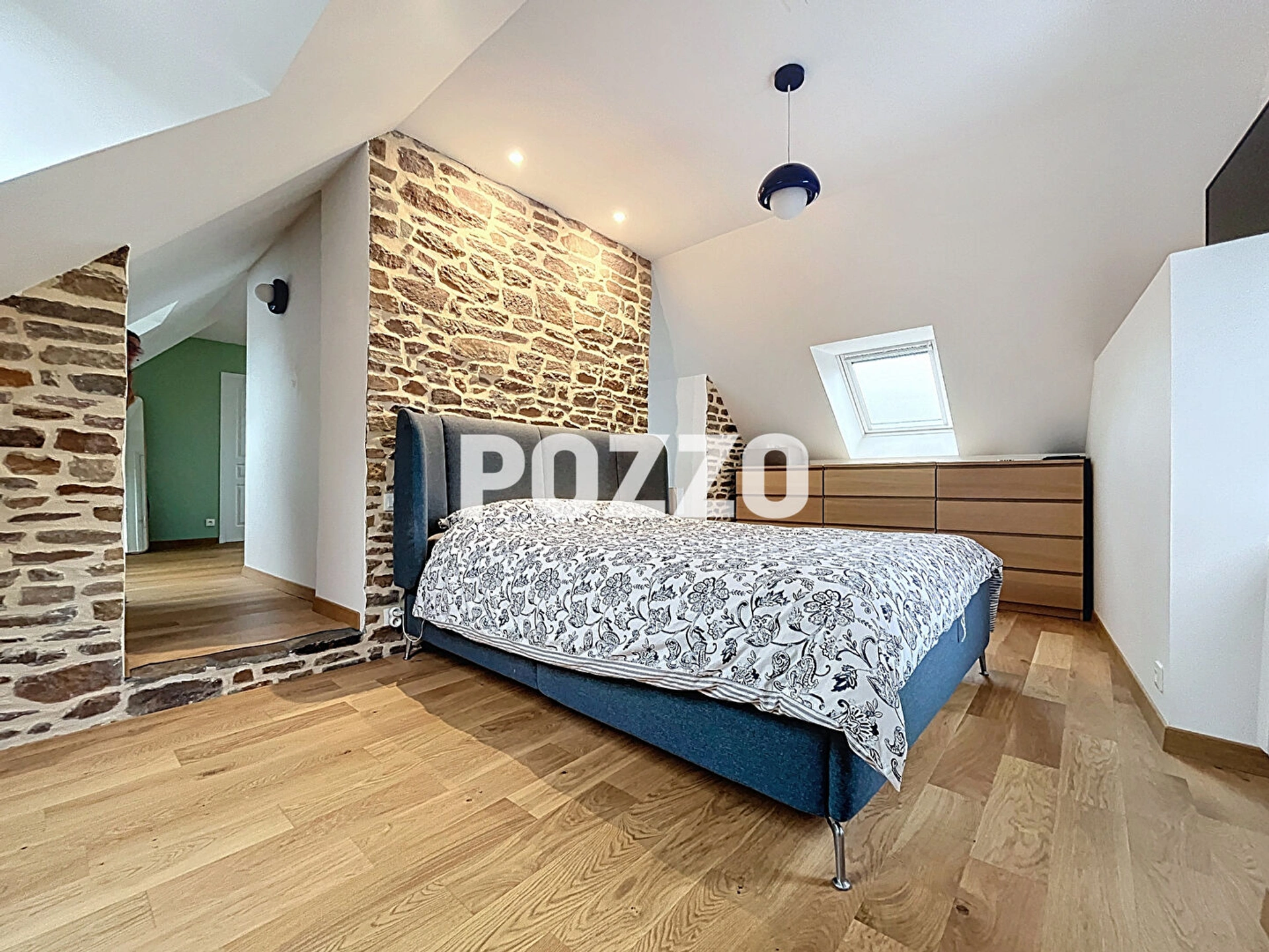 A l'étage : un grand palier aménagé en coin bureau, desservant deux chambres spacieuses, dont l'une bénéficie de sa propre salle d'eau. Un WC indépendant complète cet étage.
