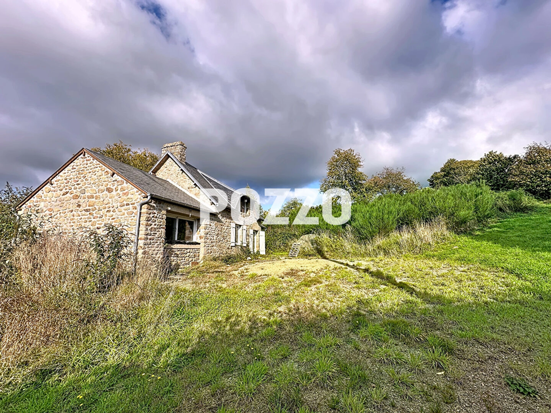 Située au calme avec une jolie vue dégagée sur la campagne environnante, à moins de 5 km de DUCEY et de tous ses commerces, écoles et services, jolie maison en pierres à rénover comprenant :