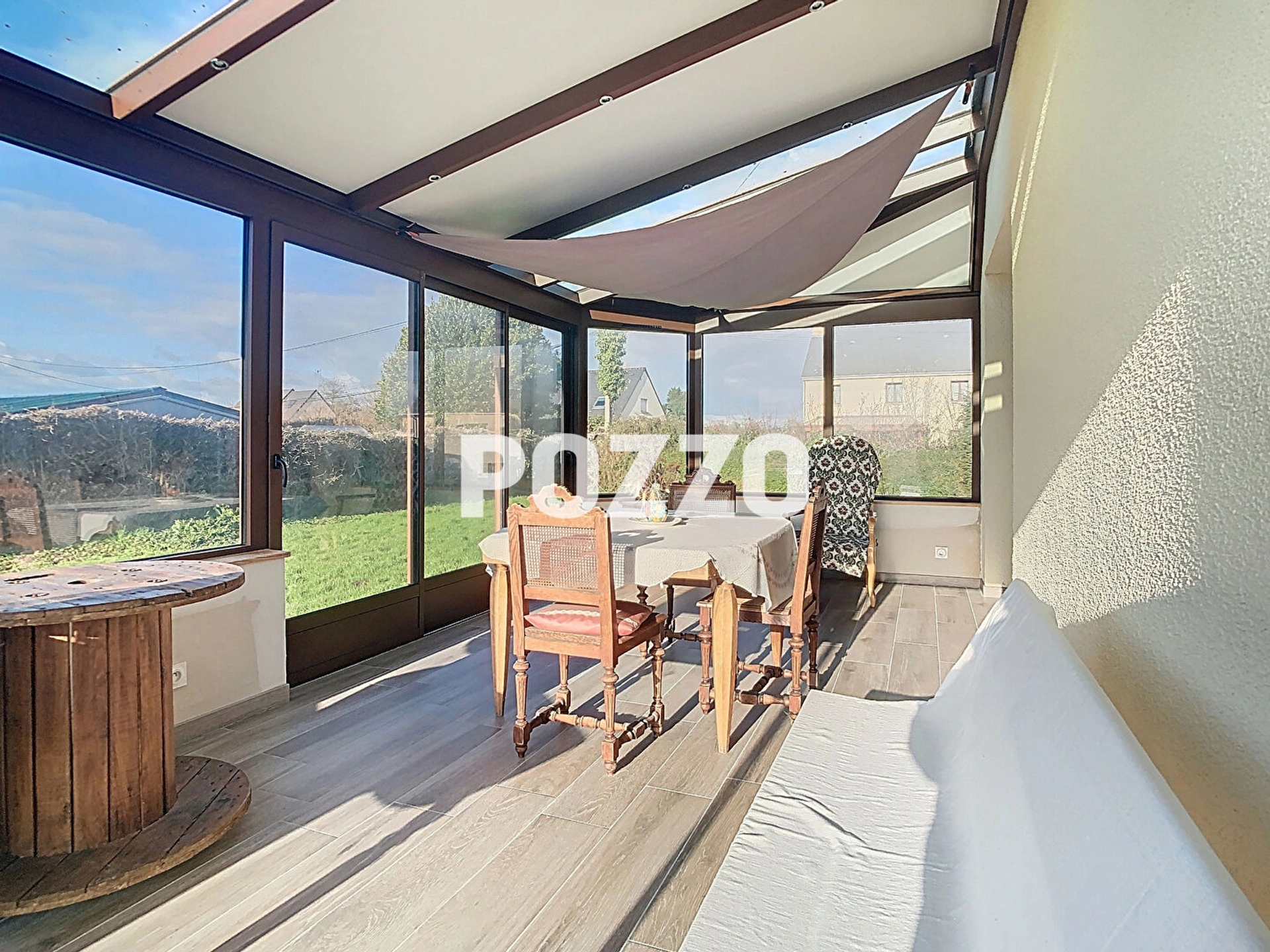 La vie au rdc comprend l'essentiel : une cuisine, une chambre, une sde, wc et un séjour avec cheminée ; traversant (belle luminosité) et prolongé par la véranda, qui apporte un espace de vie supplémentaire appréciable et chaleureux.