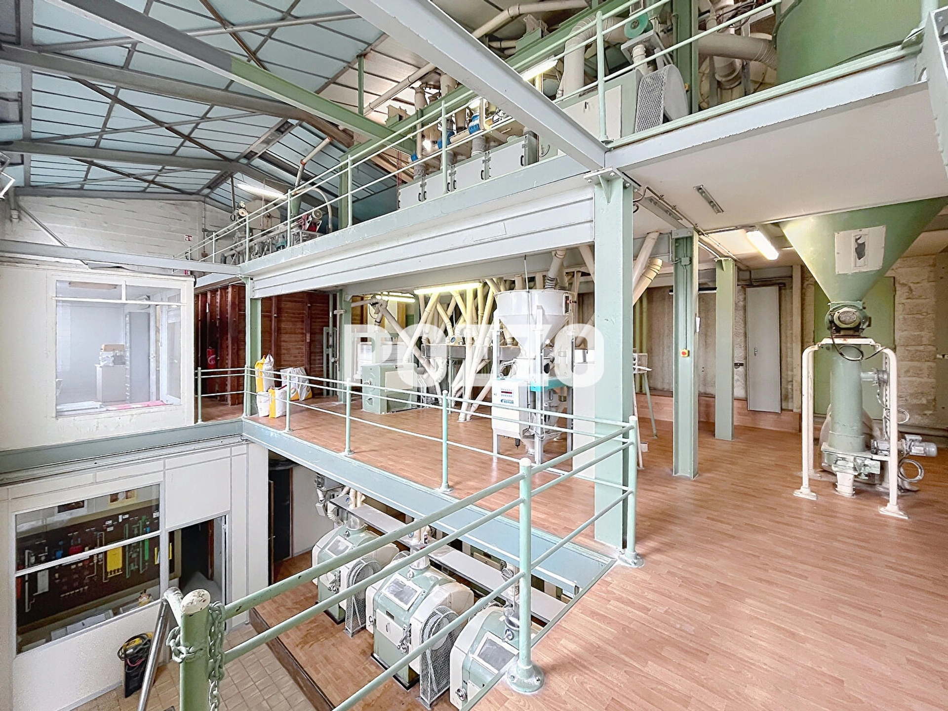 3°) Une USINE (MOULIN A FARINE) sur trois niveaux d'une superficie de 500 m² au sol + bureaux comprenant une partie accueil, 2 bureaux et WC