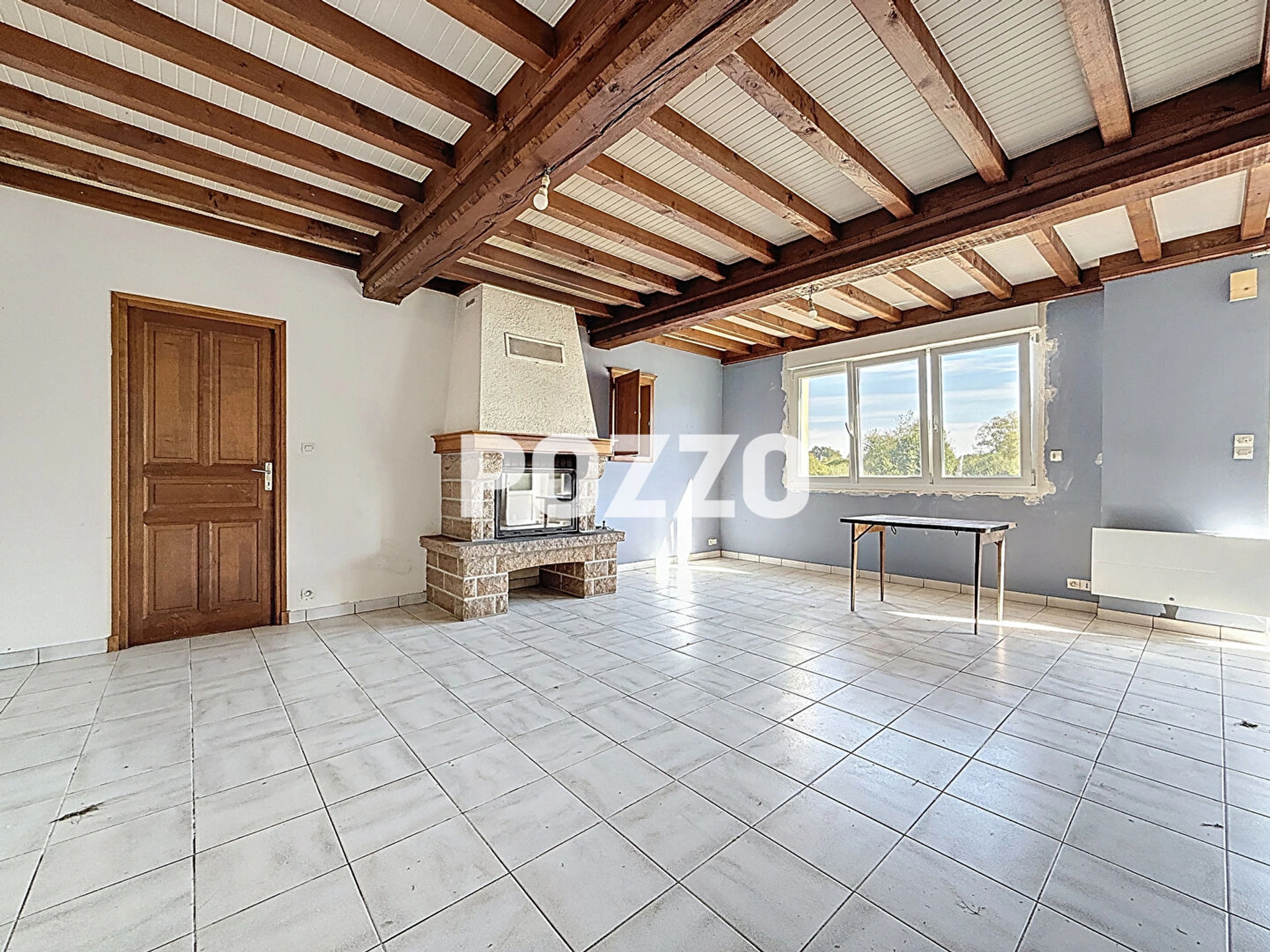 Au rez-de-chaussée, vous découvrirez une pièce de vie conviviale avec cheminée équipée d'un insert, idéale pour profiter de moments chaleureux en famille. La cuisine, aménagée et également dotée d'une cheminée, apporte un charme supplémentaire et offre un bel espace de convivialité. Ce niveau dispose aussi d'un débarras et de toilettes.