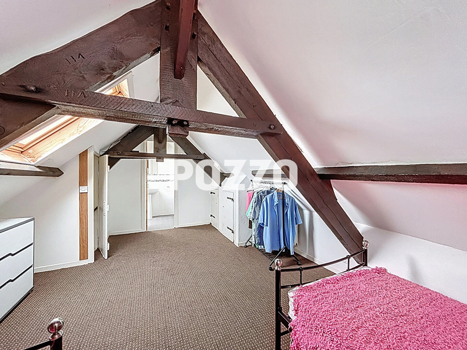 Les combles sont aménagés en chambre avec salle de bains et toilettes.