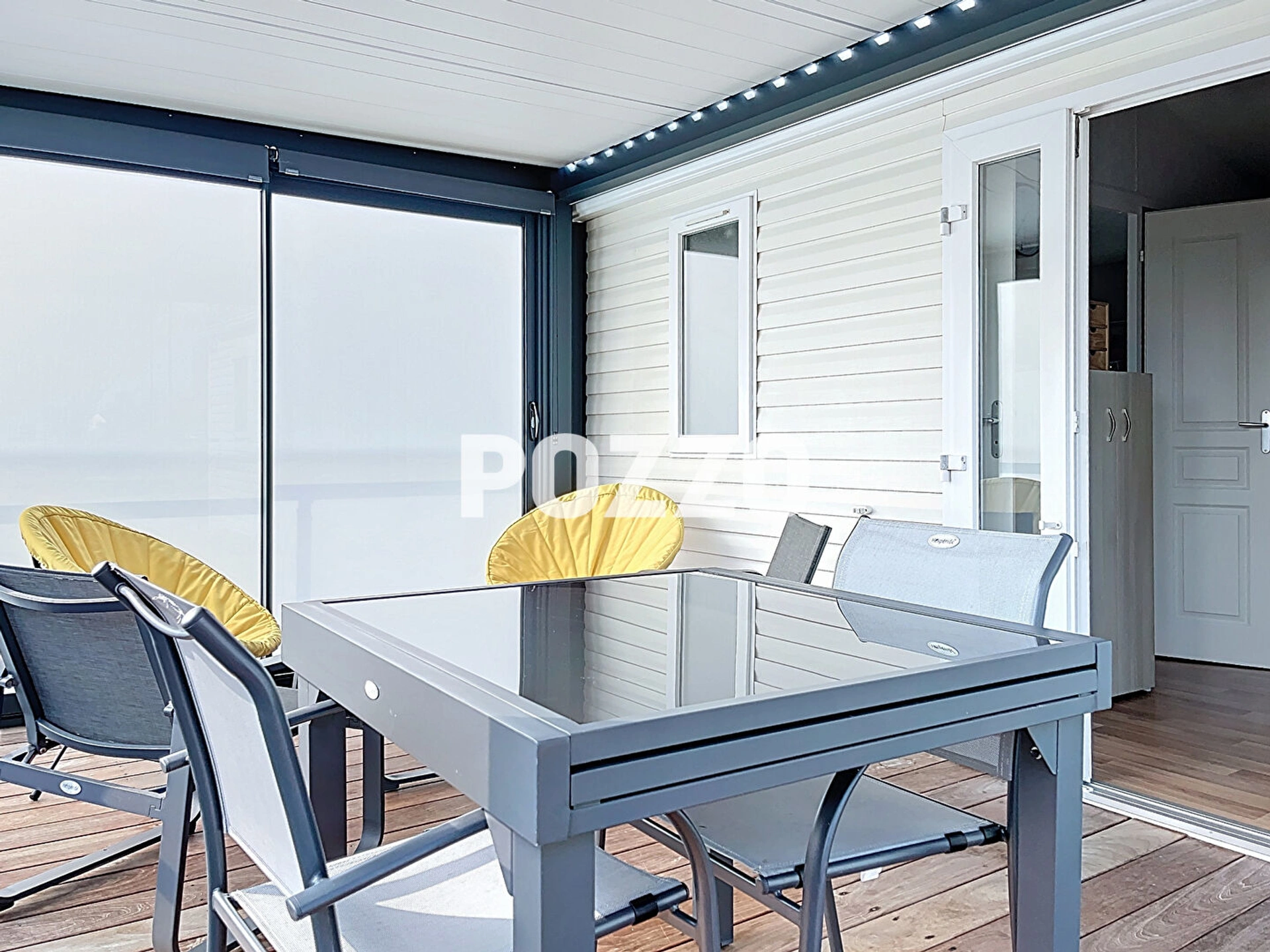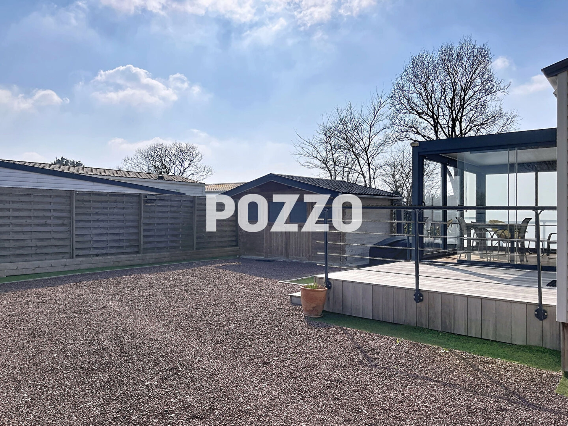 MOBIL HOME en excellent état d'entretien comprenant pièce de vie avec cuisine aménagée et équipée, deux chambres, deux salles d'eau, WC indépendant, placards et pergola bioclimatique.