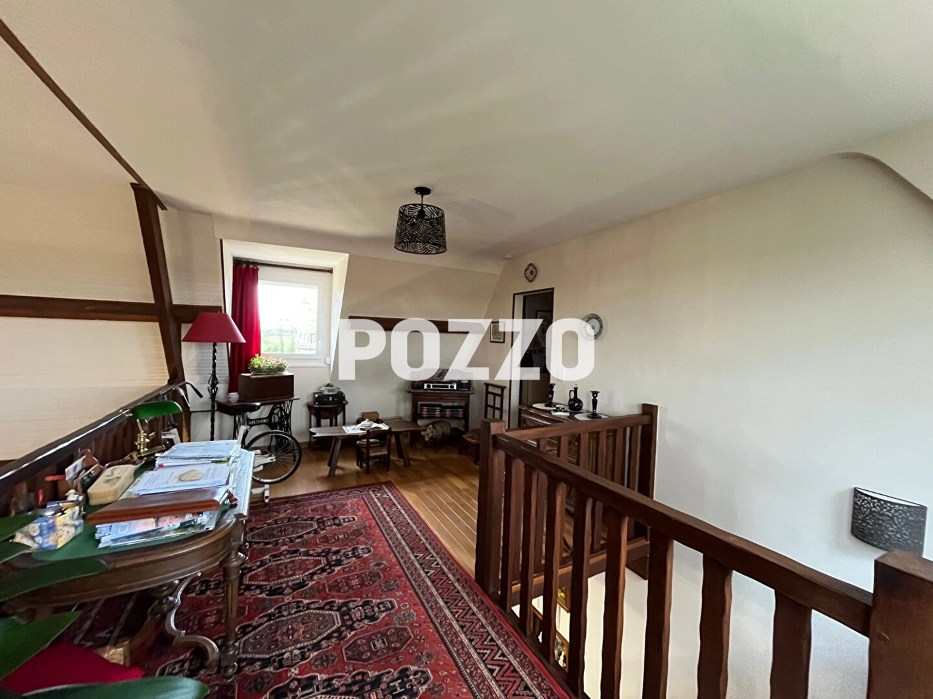 en étage : une spacieuse mezzanine - WC - un couloir avec placards desservant 2 chambres