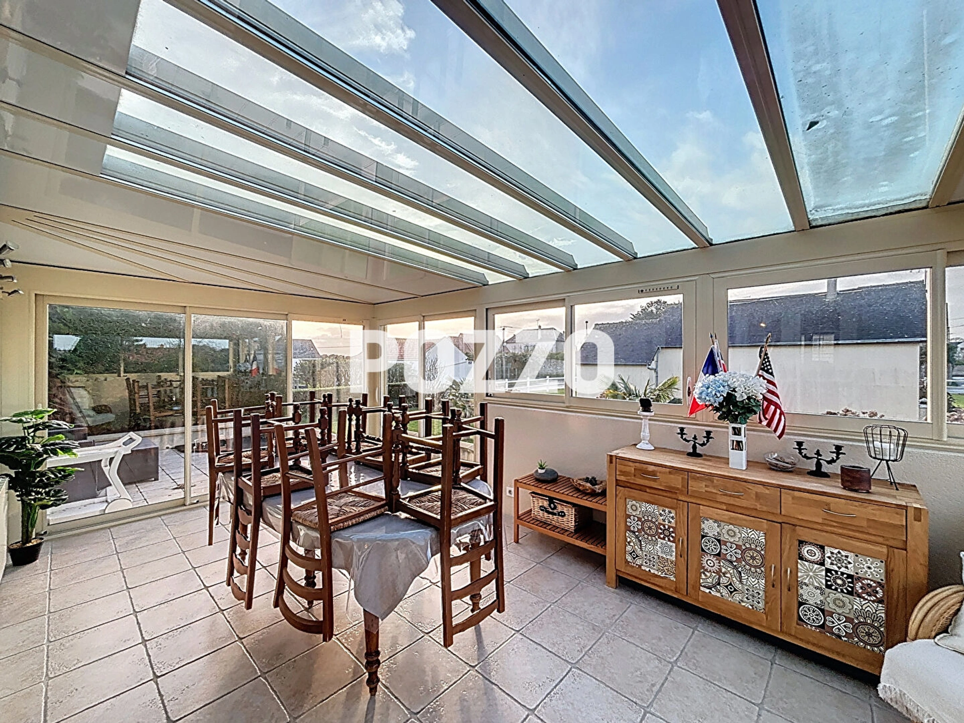 L'intérieur, lumineux et bien agencé, se compose de pièces spacieuses et fonctionnelles. Le séjour, prolongé par une véranda exposée plein sud, permet de profiter d'une belle luminosité tout au long de l'année. L'agencement a été pensé pour offrir un quotidien confortable et pratique avec une vue mer appréciable.