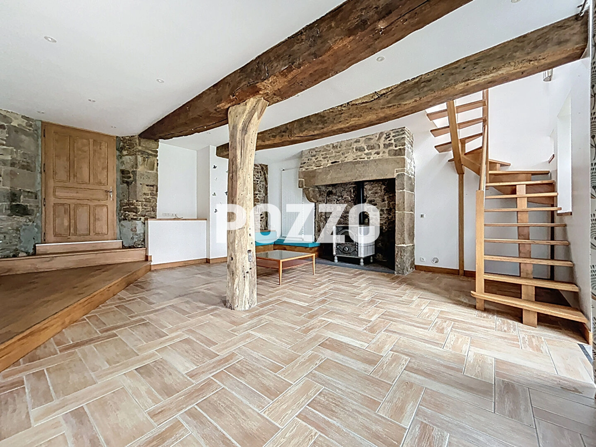 - au rez-de-rue : salon avec poêle à bois, chaufferie, cave