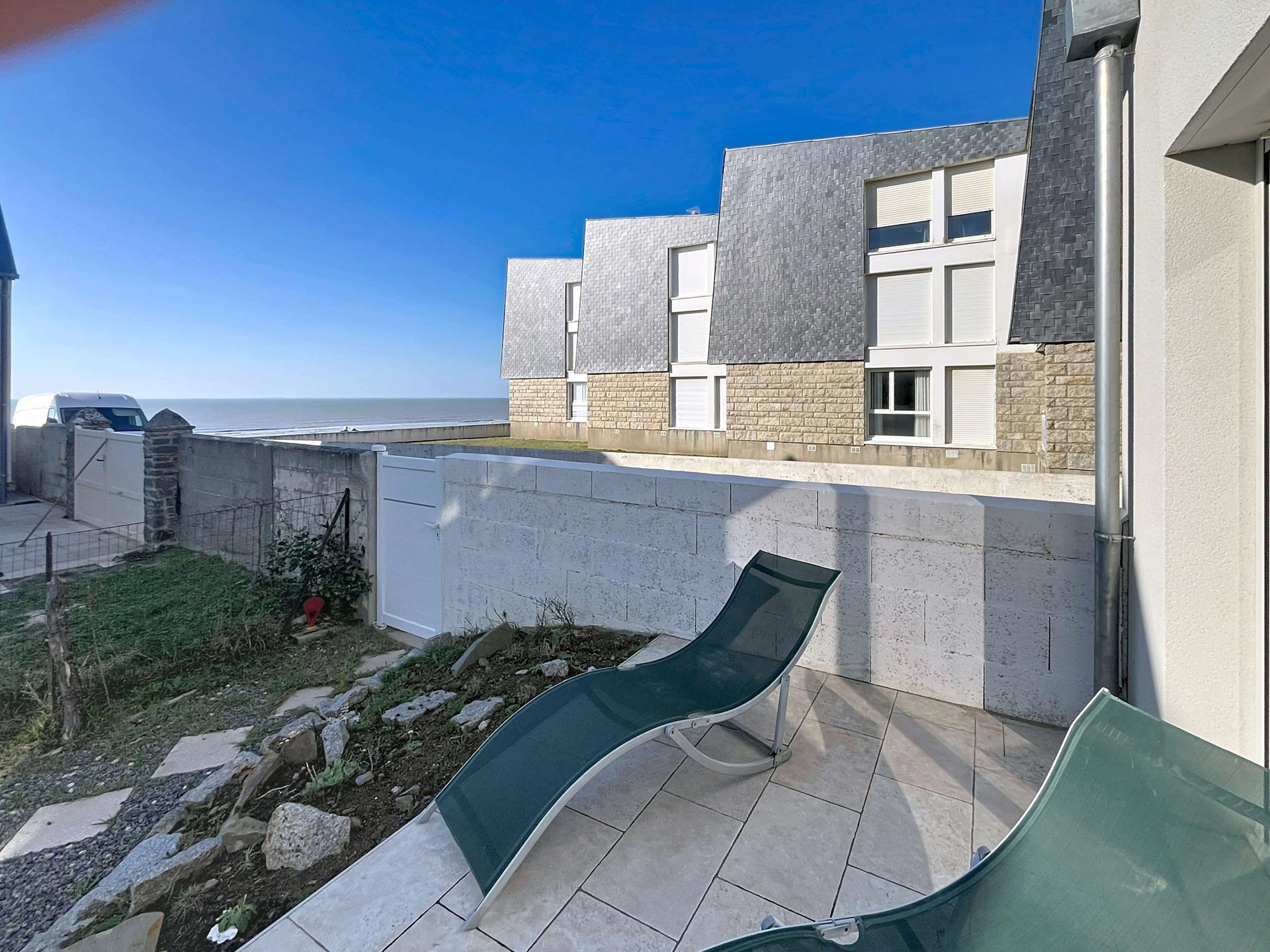 Villa récente vue mer, accès direct à la plage de Jullouville, à 500m du centre ville et ses commerces. Elle se compose d'un séjour avec vue mer, d'une cuisine ouverte (plaques vitrocéramique, four, micro-ondes, lave-vaisselle, lave-linge), d'une chambre avec lit double de 160, salle de bain privative.