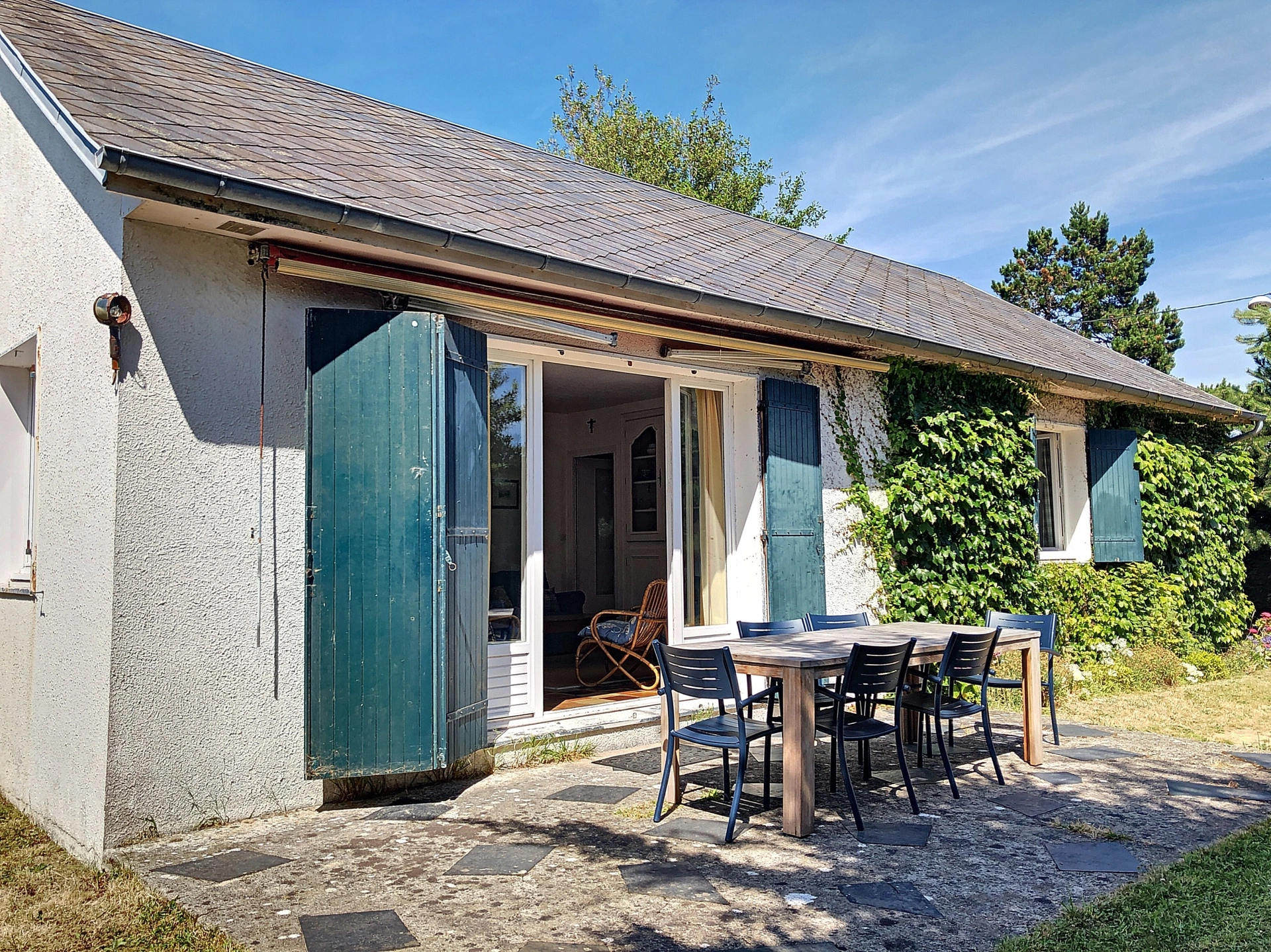 Jardin clos avec mobilier de jardin.